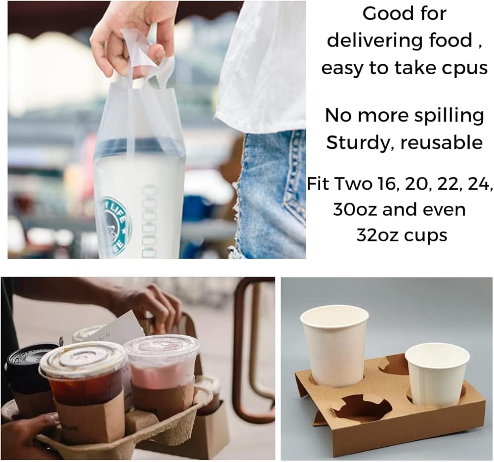 بالنسبة للأعمال الغذائية: ستعمل هذه الحقائب على تعزيز طلباتك الجاهزة. سيحب العملاء هذه الحقائب، لأنها تسهل حمل المشروبات. هذه الحقائب رائعة لأكواب القهوة سعة 16 و20 و22 و24 و30 أونصة وحتى 32 أونصة من القهوة والبوبا والثلج والحساء المجمد والمشروبات. يمكن للعملاء إخراج الطلب دون القلق بشأن تعرضهم للحرق أو التجميد بواسطة الأكواب.