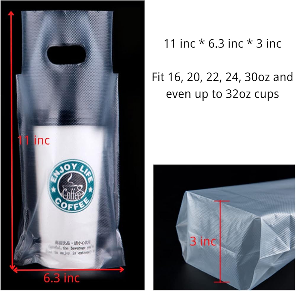 100 قطعة من أكياس بولي الشرب بمقبض، أكياس تغليف بلاستيكية شفافة لتوصيل الطعام، 6.3 بوصة × 11 بوصة تحمل ما يصل إلى 32 أونصة من الأكواب، حامل أكواب بفتحة معلقة مع مقبض للإخراج والمشروبات