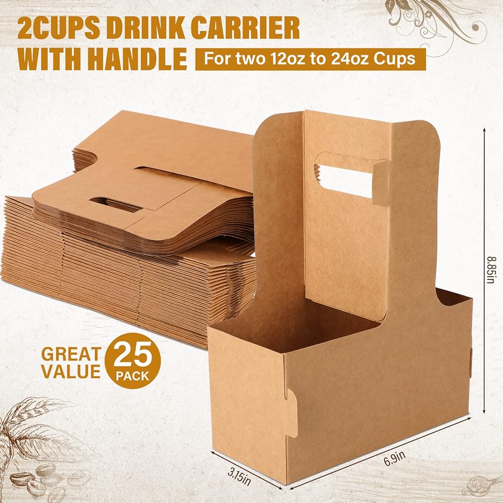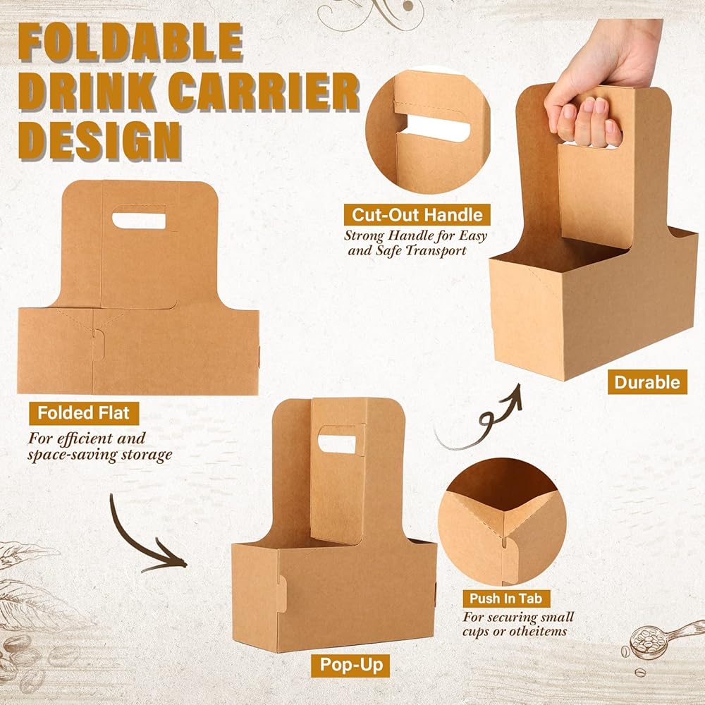 الكمية والمقاس: ستحصل على 100 قطعة من حاملي الأكواب من الورق المقوى، مقاس 6.9 × 3.1 × 8.9 انش، كل كوب يحمل 12-30 اونصة من المشروبات؛ تأتي حاملات الأكواب بمقبض مقطوع حتى تتمكن من حمل مشروباتك بسهولة أكبر