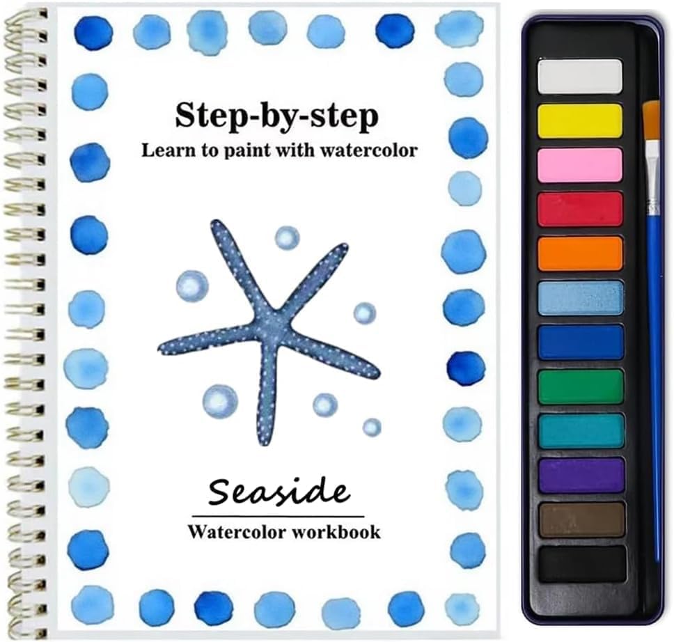 مجموعة الرسم بالألوان المائية للمبتدئين - مجموعة طلاء مكونة من 12 لونًا مع فرشاة، ومستلزمات فنية تحت عنوان الزهور للبالغين والمراهقين (شاطئ البحر)