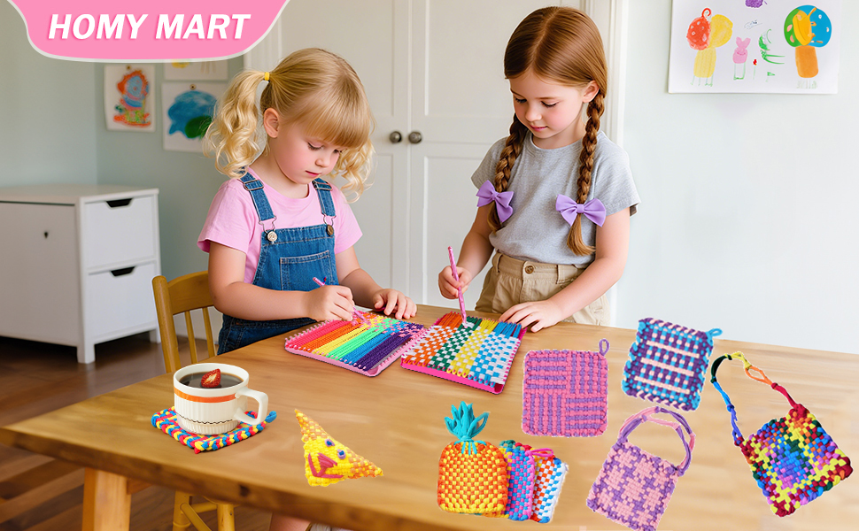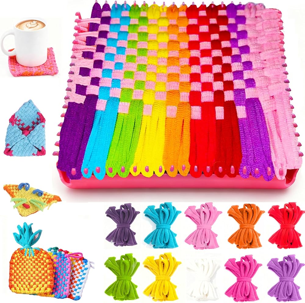 HOMY MART Weaving Loom Kit Toys للأطفال والكبار، حلقات بوثولدر الحرف اليدوية للفتيات الذين تتراوح أعمارهم بين 6 7 8 9 10 11 12، 7 "وعاء حامل تلوح في الأفق مجموعات الحياكة والهدايا للأطفال والمبتدئين، 280 حلقة حرفية