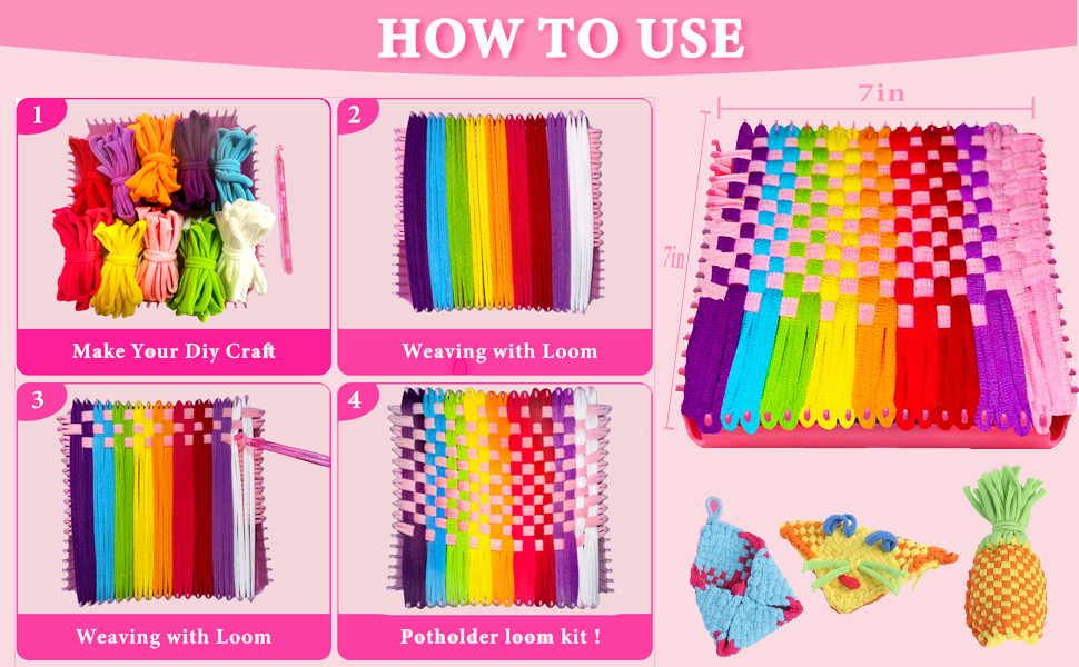 هدية مثالية للفتيات المبدعات بعمر 6,7,8,9,10,11,12 مجموعة حرفية مثالية لأعياد الميلاد أو الكريسماس أو العطلات، مجموعة النول حامل الوعاء هذه تثير الإبداع لدى الفتيات بعمر 6,7,8,9,10,11,12. يقوم الأطفال بتحويل حلقات النايلون إلى تحف فنية مخصصة، وبناء الثقة والفخر بإبداعاتهم اليدوية.