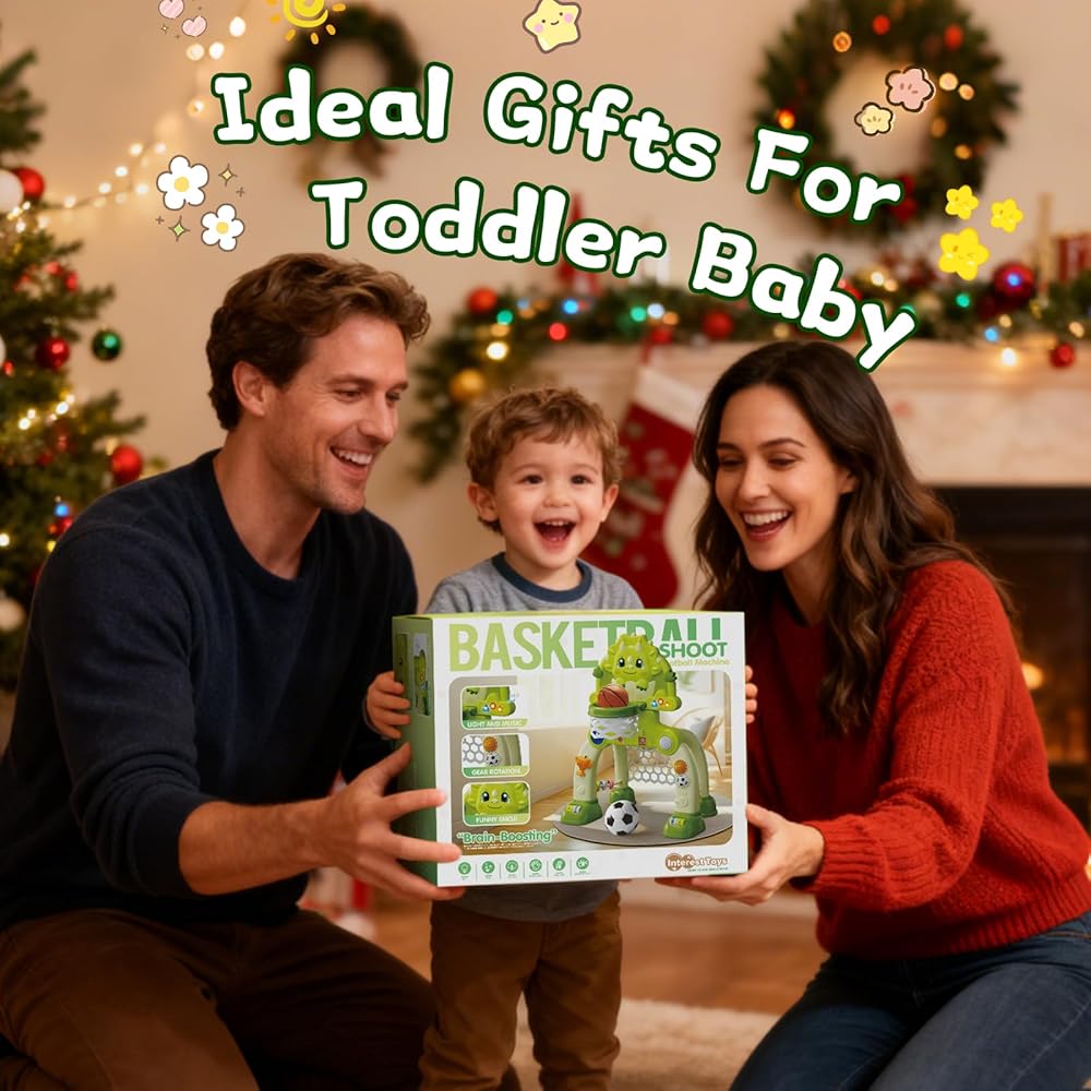 هدف كرة السلة للأطفال الصغار من عمر 1 إلى 3 سنوات، ألعاب أطفال لهدايا الأولاد بعمر عام واحد، لعبة رياضية للأطفال مع موسيقى صوتية خفيفة، ألعاب تفاعلية للأطفال لهدايا عيد الميلاد للأولاد والبنات