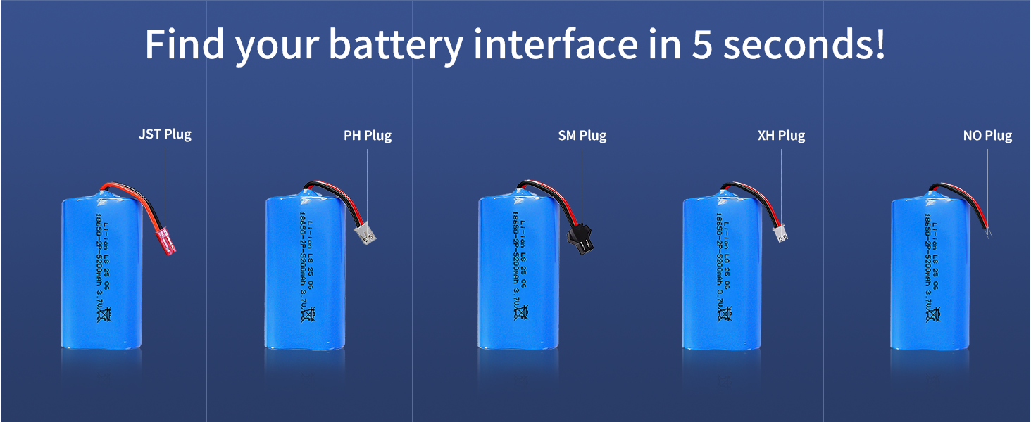 نموذج قابس البطارية: موصل ph-2 دبوس، السلك الأحمر يمثل الطرف الموجب (+) والسلك الأسود يمثل الطرف السالب (-)