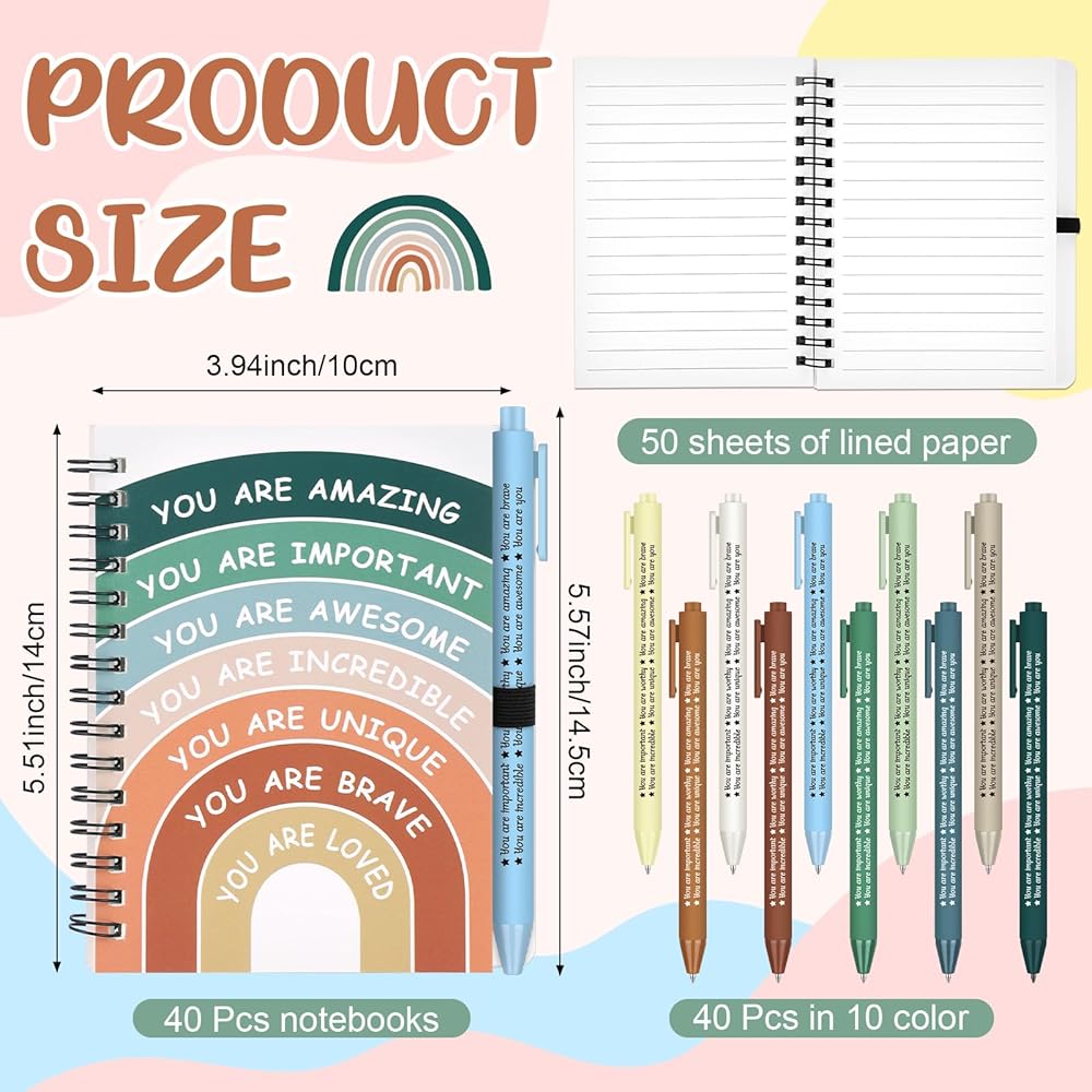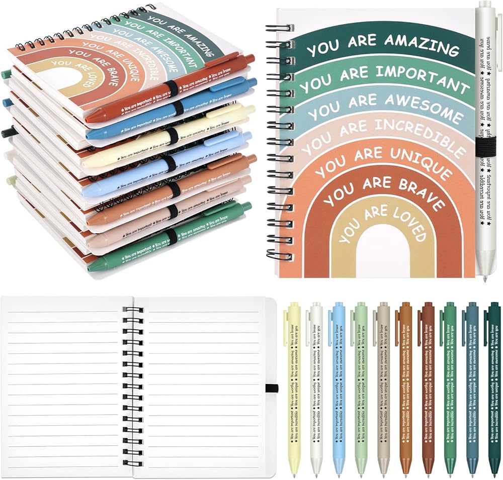 Mental Health Awareness Gifts Positive Affirmation Notepad Inspirational Journal Motivational Pen for Teachers Classroom Rewards Staff Encourage Notebooks Students School Supplies (Rainbow)
