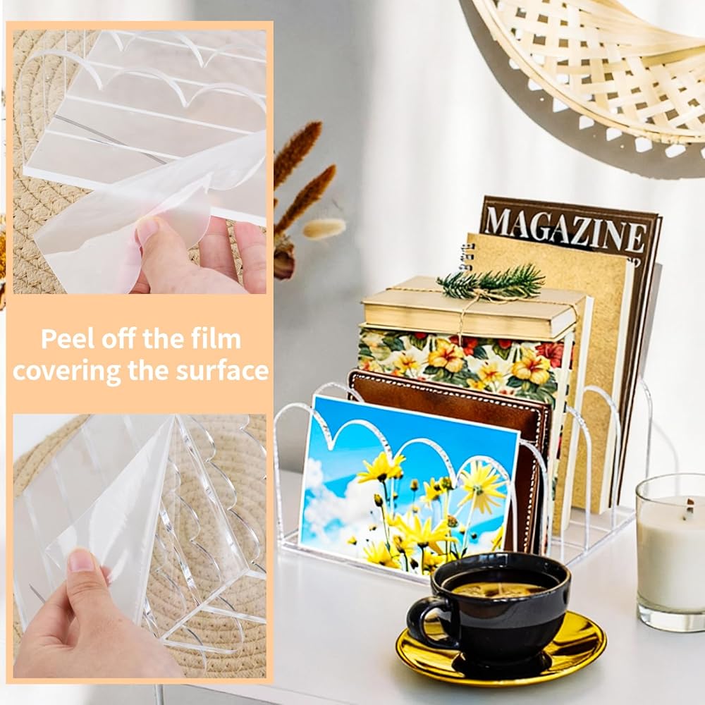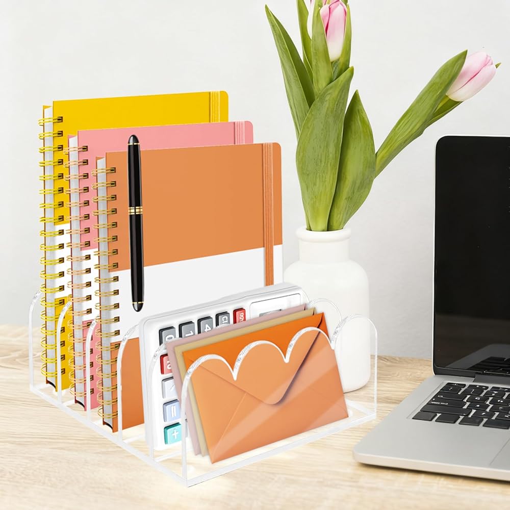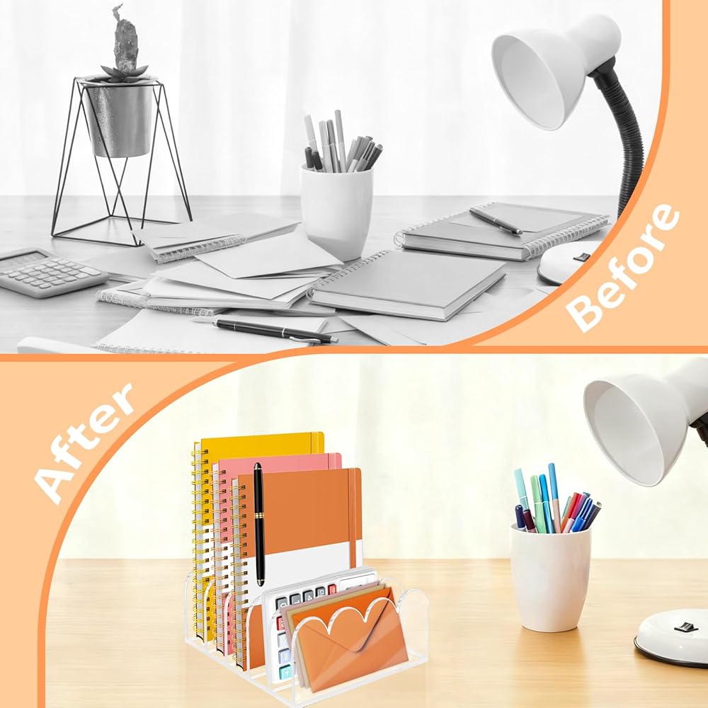 Versatile Use: acrylic desk organizer can provide enough space to organize emails, letters, files, magazines,postcards, books, folders, or even cosmetics like eye shadow palettes. Say goodbye to messy piles and keep your desk, counter, or dorm table neat and clutter-free.