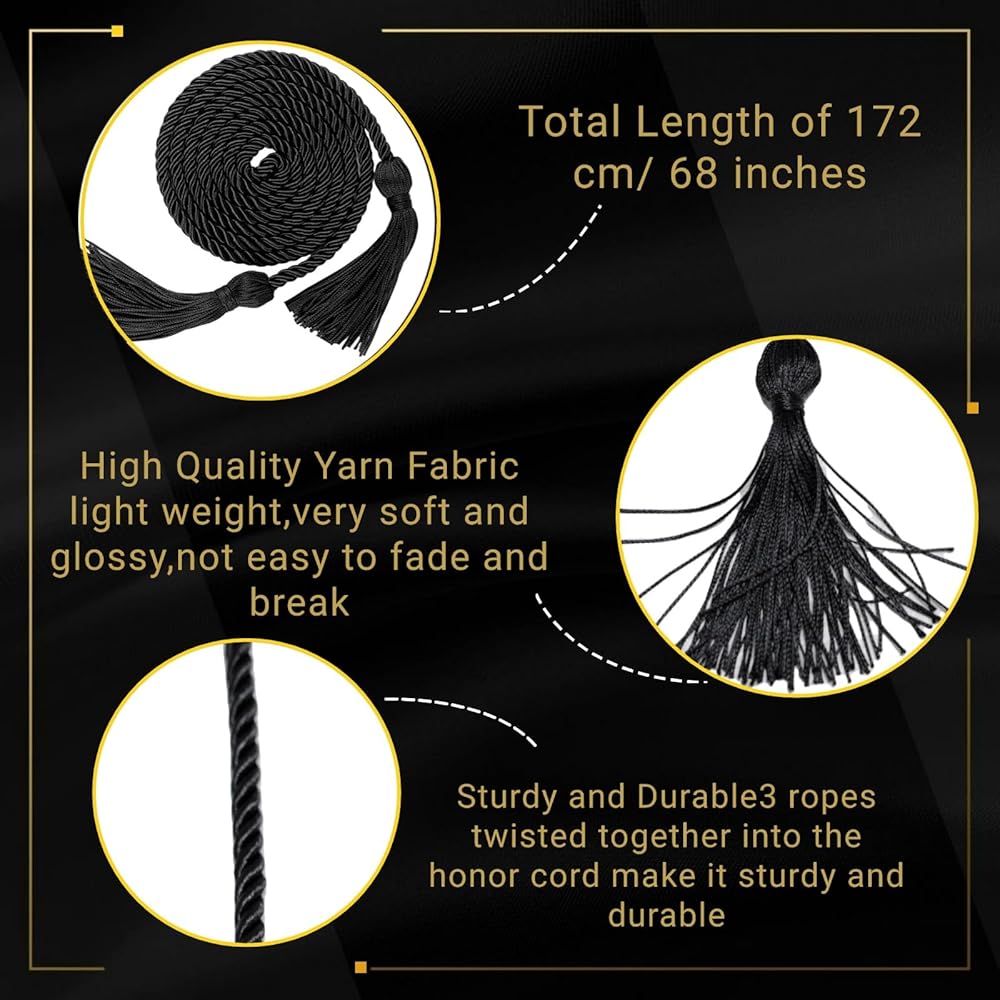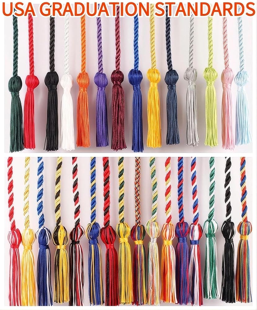 معيار التخرج في الولايات المتحدة الأمريكية - إجمالي طول حبال شرف التخرج باللونين الأزرق والأبيض الملكي هو 68 بوصة مع شرابة، وطول جزء السلك 64 بوصة، وطول الشرابة 4 بوصة، ويستخدمها الخريجون في جميع أنحاء الولايات المتحدة الأمريكية لجميع مستويات التخرج!