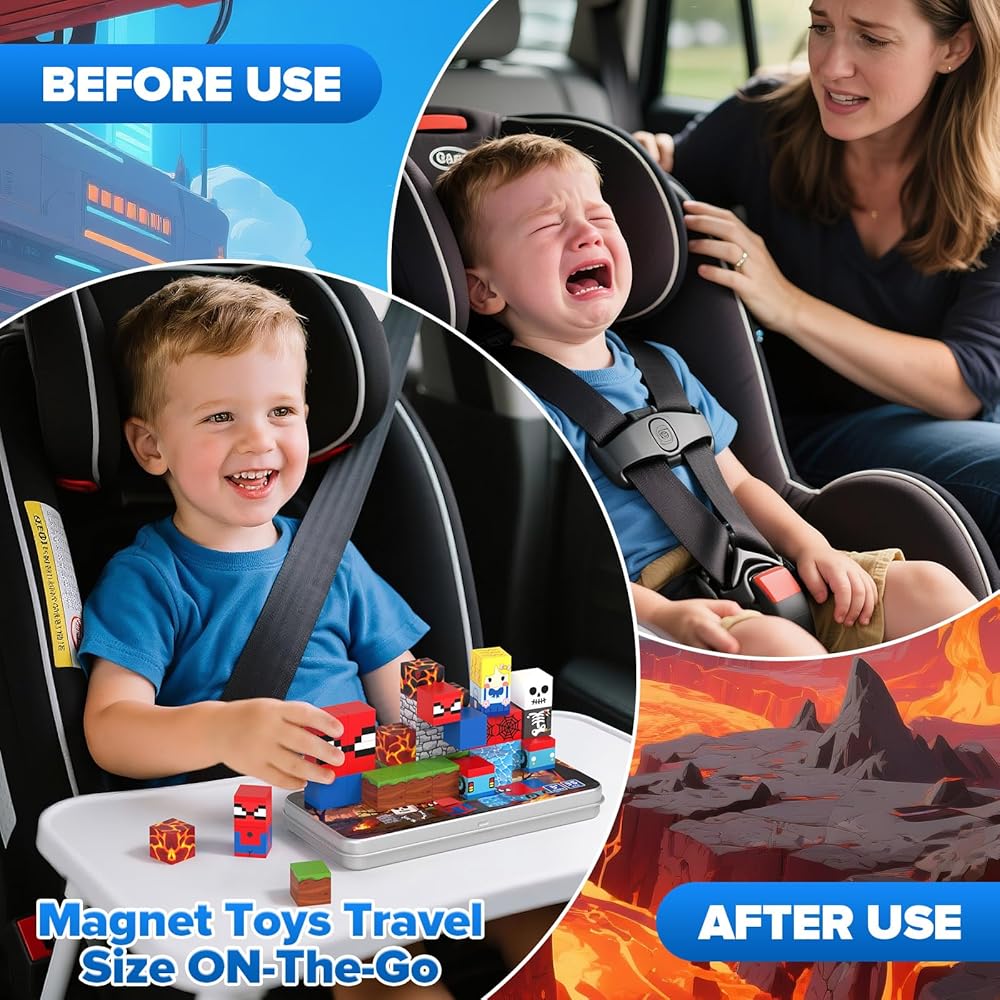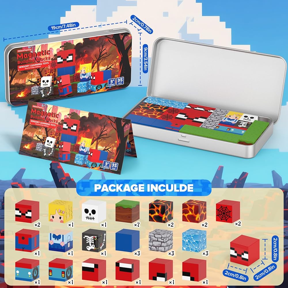 【رفيق سفر محمول شامل】35 قطعة من مكعبات البناء المغناطيسية مع صندوق تخزين حديدي تخلق "قاعدة إبداعية متنقلة". يمكن استخدام الصندوق الحديدي كوحدة تخزين (يمكن وضعها بسهولة في حقائب الظهر أو حقائب السفر) ومنصة بناء أثناء التنقل - مثالية للطائرات والقطارات والمطاعم وسيناريوهات السفر. يمكن للأطفال البناء بحرية على سطح الصندوق، وغمر أنفسهم في اللعب الخيالي لإبقاء السفر خاليًا من التوتر وتوديع الضجيج الناتج عن الملل.