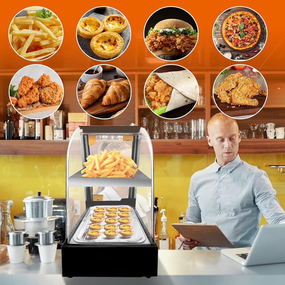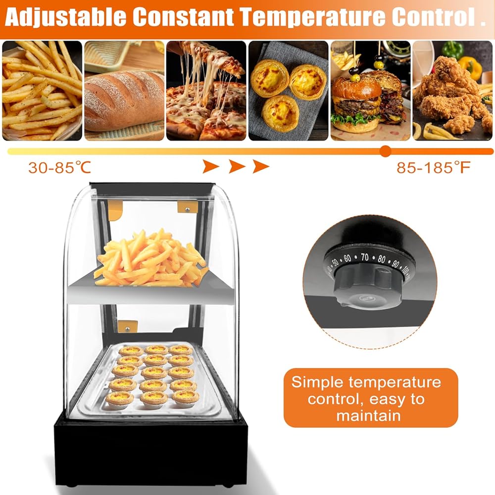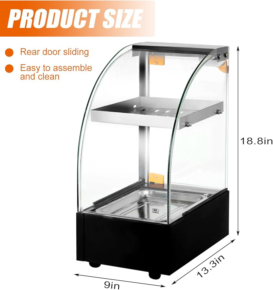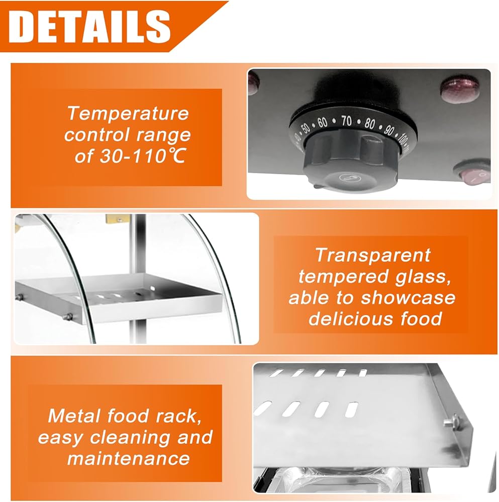 زجاج عازل عالي الجودة: تصنيع الفولاذ المقاوم للصدأ يجعل عرض سخان الطعام قويًا ومتينًا. مساحة كبيرة من الزجاج المقسى تسمح للعملاء بالملاحظة للوهلة الأولى
