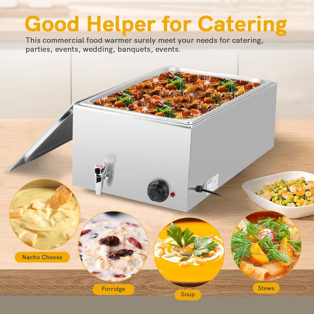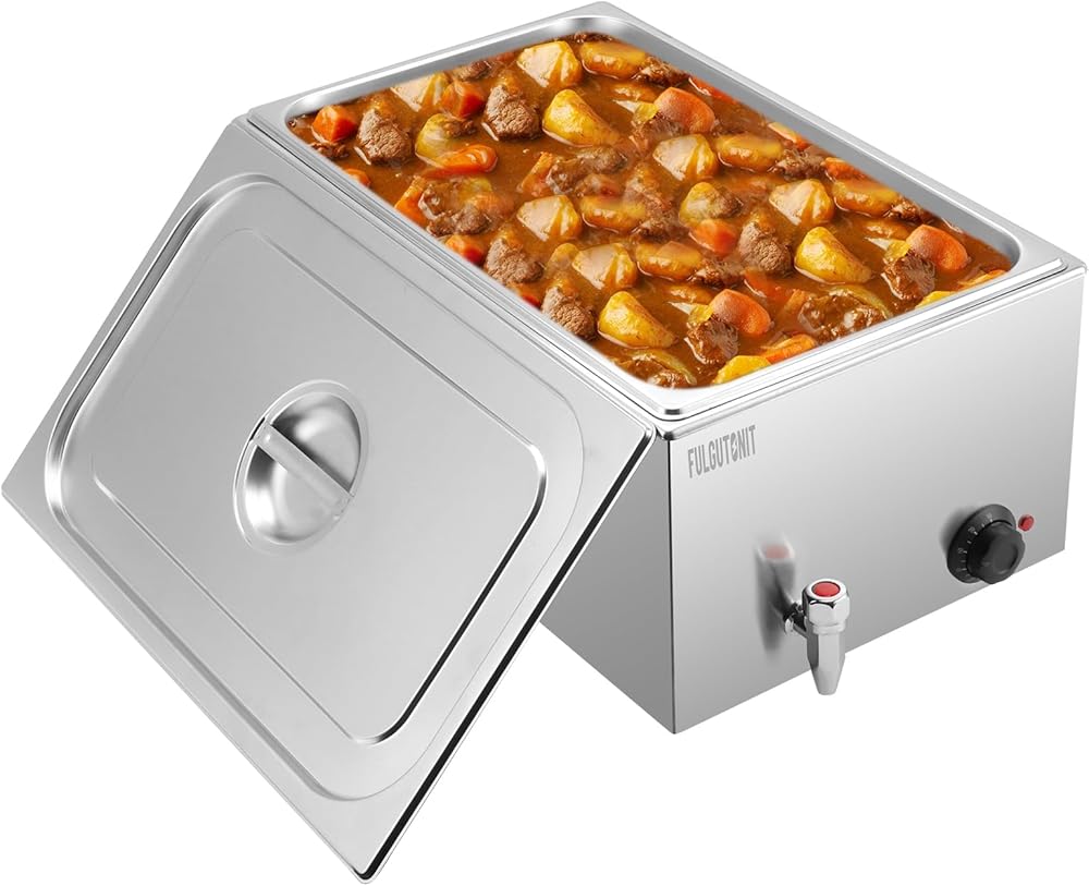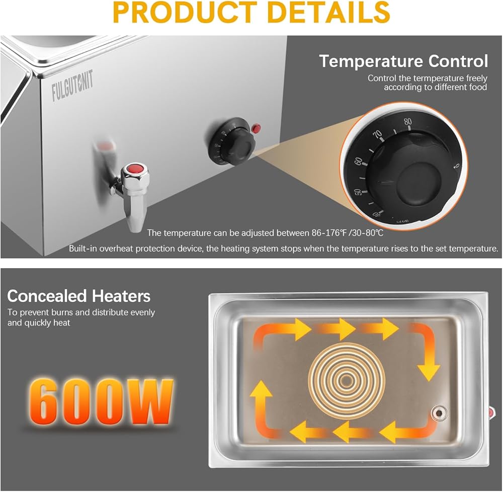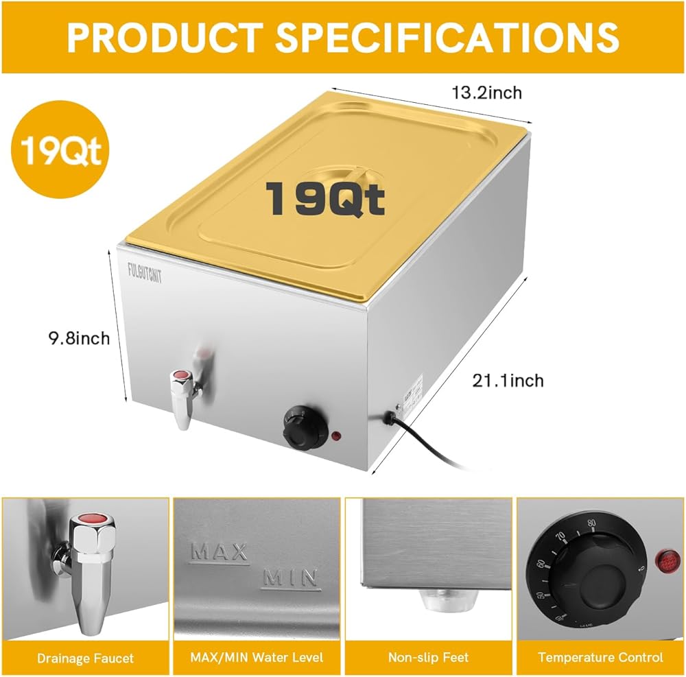 جهاز تسخين الطعام التجاري من فولجوتونيت، 600 وات 19 كيو تي، سخان طعام بالحجم الكامل، سطح طاولة بخار كهربائي احترافي باين ماري مع درجة حرارة قابلة للتعديل وغطاء للحفلات والمطاعم وتقديم الطعام