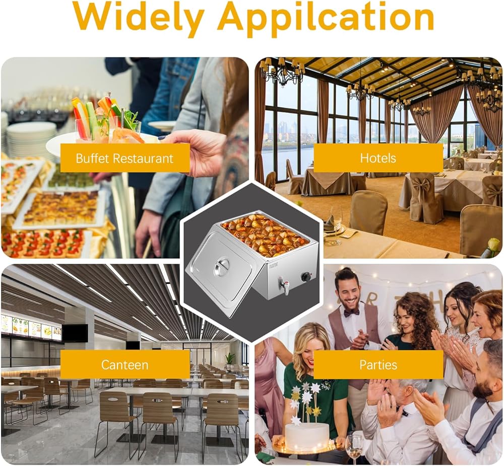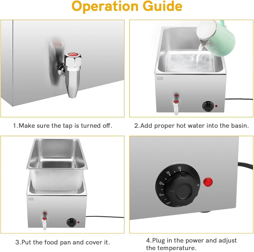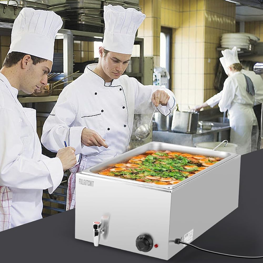 جهاز تسخين الطعام التجاري من فولجوتونيت، 600 وات 19 كيو تي، سخان طعام بالحجم الكامل، سطح طاولة بخار كهربائي احترافي باين ماري مع درجة حرارة قابلة للتعديل وغطاء للحفلات والمطاعم وتقديم الطعام