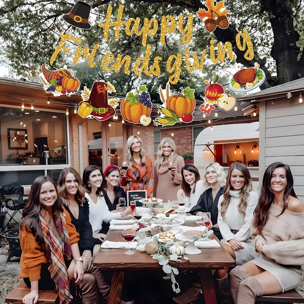 • FRIENDSGIVING BANNER DECORATIONS,WORKS FOR WHAT IT IS:The paper is sturdy,and could last the whole day,the quality is glitter materials,the Happy Friendsgiving banner sign looks really good!Just celebrating Friendsgiving in November