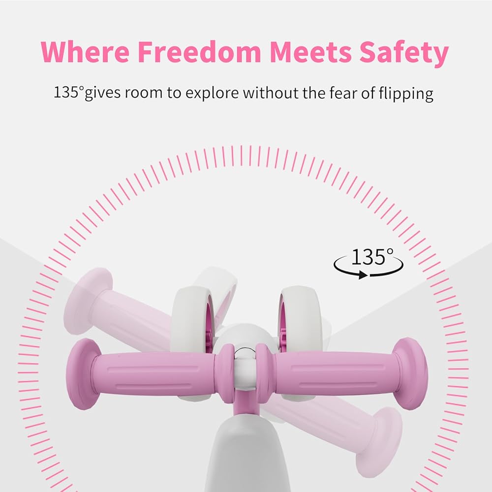 Patented 135° Smart Steering System automatically corrects balance angles while maintaining 3-point contact with the ground. Features 1.5" wide non-puncture tires (vs standard 1") with 40% better traction. Low center-of-gravity design for toddlers to get on and off their own as well better stability