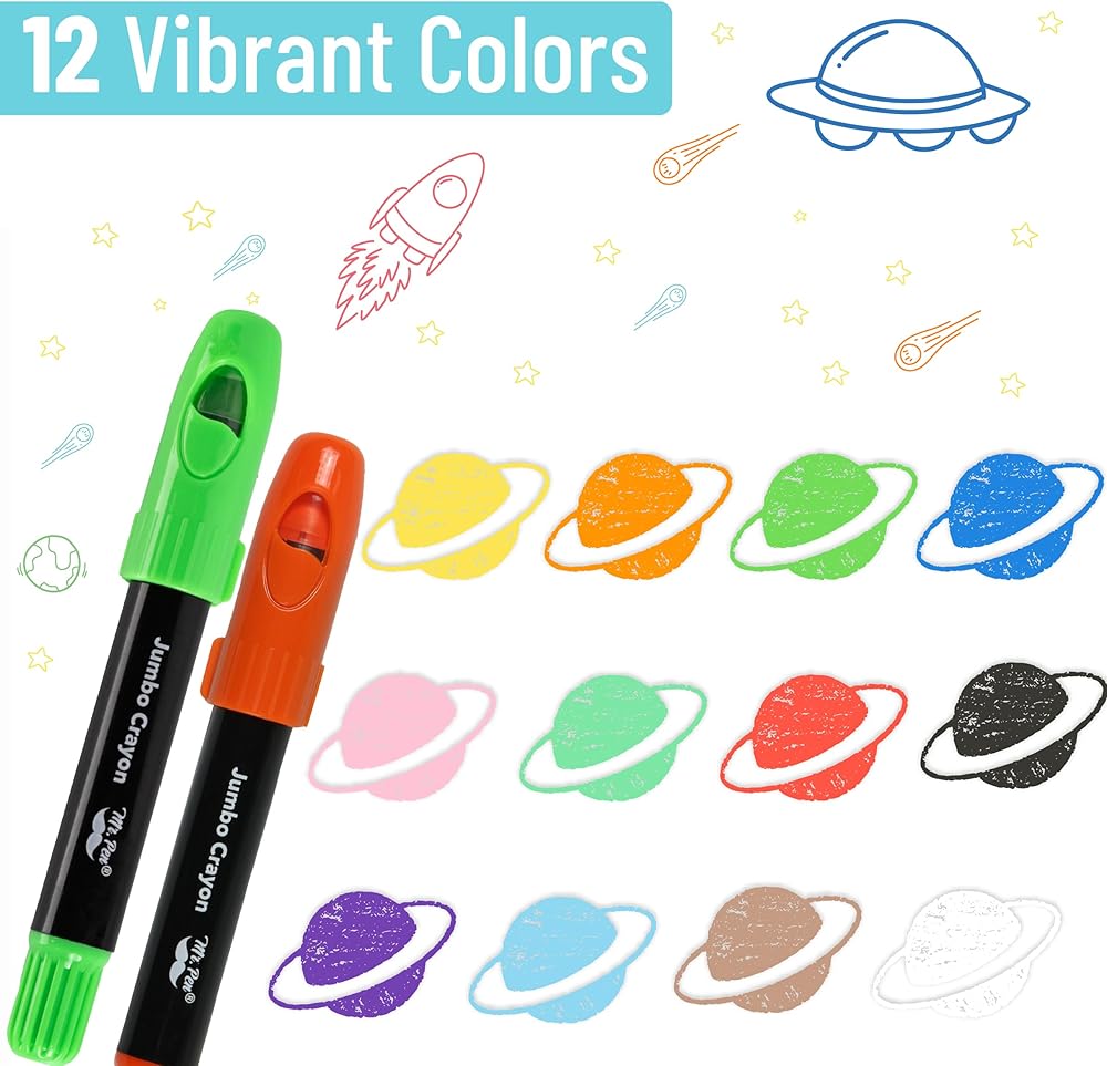 Mr. Pen jumbo twistable crayons come in a 12-pack and feature a rich selection of vibrant colors, perfect for coloring, drawing, and creative expression at home or in the classroom.