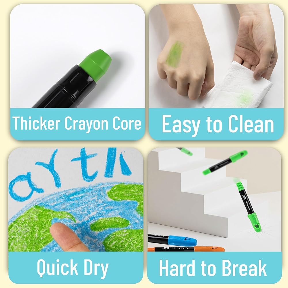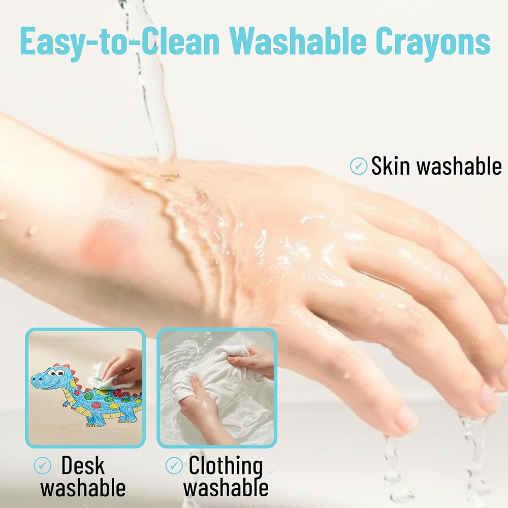 Fully washable from skin and most fabrics, these crayons offer a stress-free experience for parents and teachers while encouraging mess-free fun.