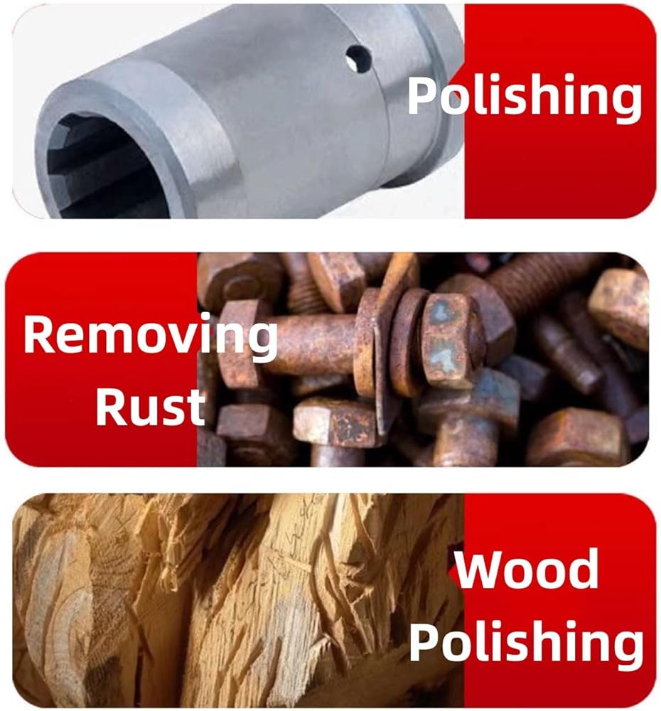 Wide Application - The burnishing tool can polish mild steel, stainless steel,aluminum, copper products, plastics, fibers,wood, stone, concrete surfaces, etc. Widelyused in automobiles, ships, construction,furniture, bridges and home repairs andother fields.