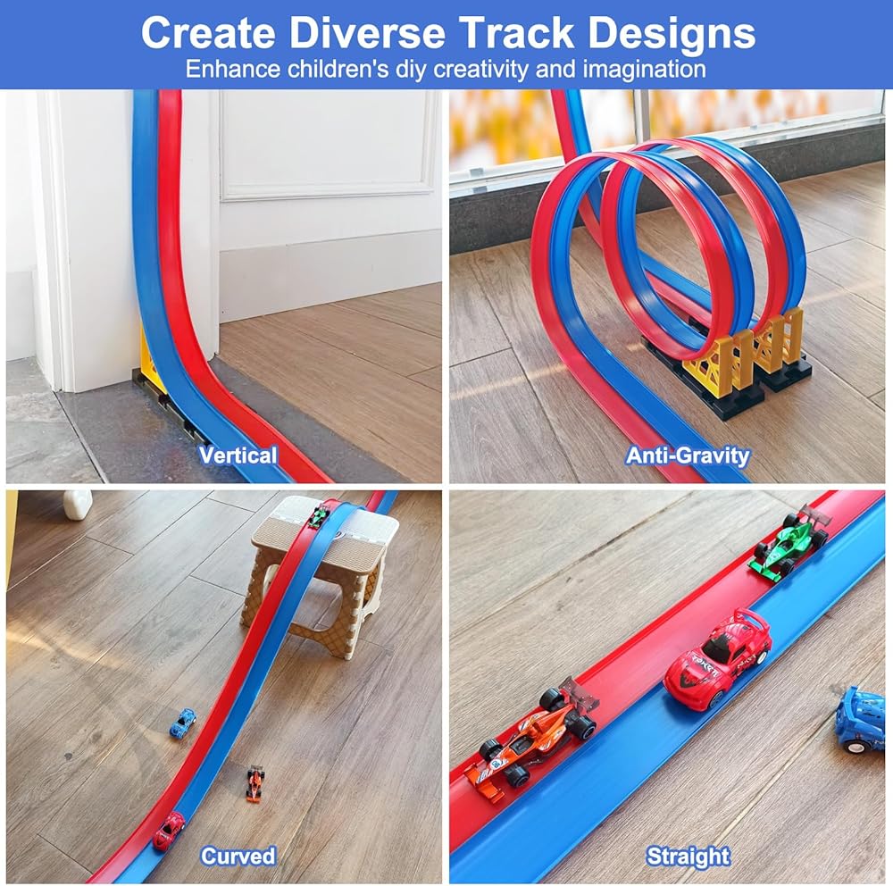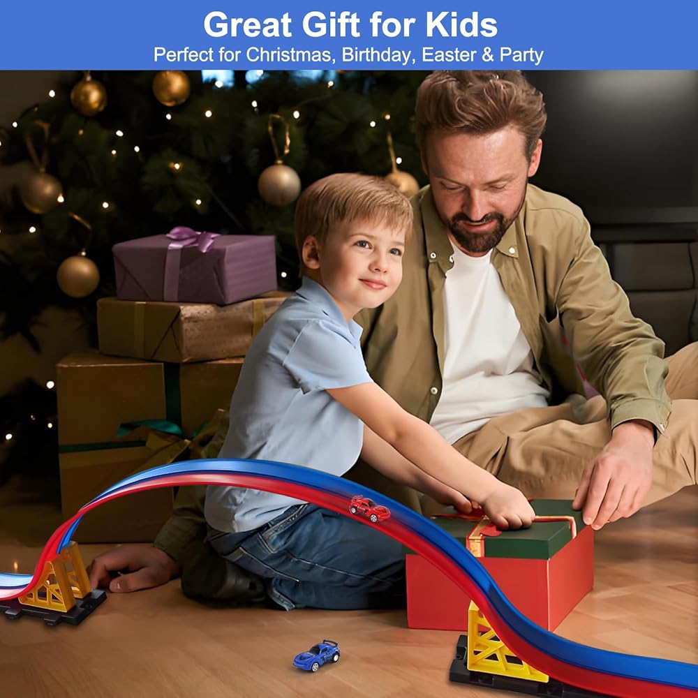【إثارة الإبداع وتقوية الروابط العائلية】 أكثر من مجرد لعبة، مسار السيارة المرن هذا يثير الخيال. يمكن للأطفال تصميم الحلقات والمنحدرات والمنعطفات الحادة والقطرات المثيرة، بينما يمكن للوالدين الانضمام إلى متعة البناء. إنه يشجع على حل المشكلات والتعلم العملي واللعب بدون شاشة - مما يخلق لحظات ترابط خاصة بين الآباء والأطفال.