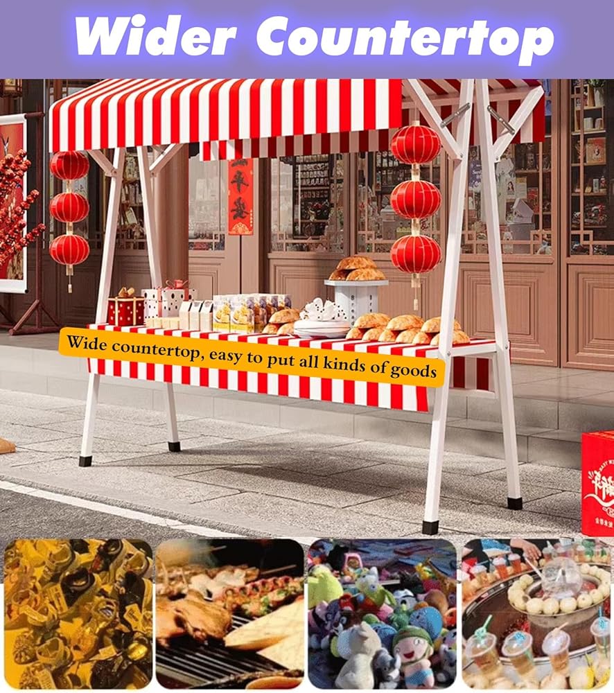• Awning & Wide Countertop Upgrade your food biz with our vendor stand! Wide countertop, easy to put all kinds of goods, Oxford Cloth awning that provides ample shade, blocks UV rays, and withstands outdoor elements - keeping you and your food protected all day long