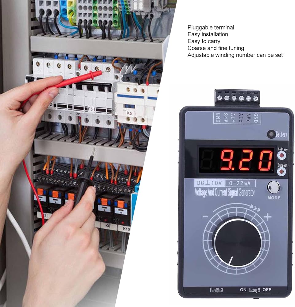 【مستقر ومريح باليد】يعتمد مولد إشارة الجهد الحالي على طرف قابل للتوصيل، ويدعم التركيب السهل، وله أداء ثابت، وسهل الحمل. مولد إشارة رقمية محمول، يدعم 3 أوضاع إمداد الطاقة، أكثر ملاءمة للاستخدام