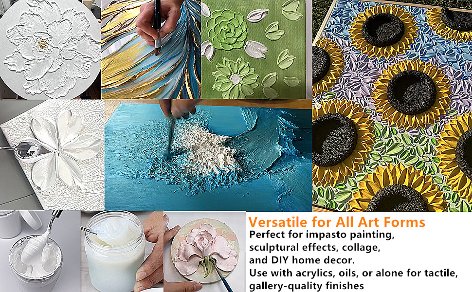 ملمس وأبعاد بدرجة احترافية - قم بإنشاء أنسجة سميكة ثلاثية الأبعاد على القماش أو الخشب أو مشاريع الوسائط المختلطة باستخدام معجون صب الأكريليك الثقيل هذا. يحمل القمم والأشكال دون أن يتشقق