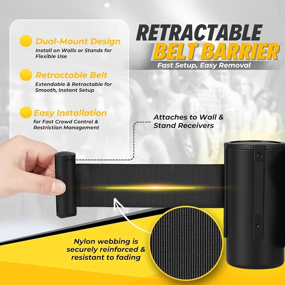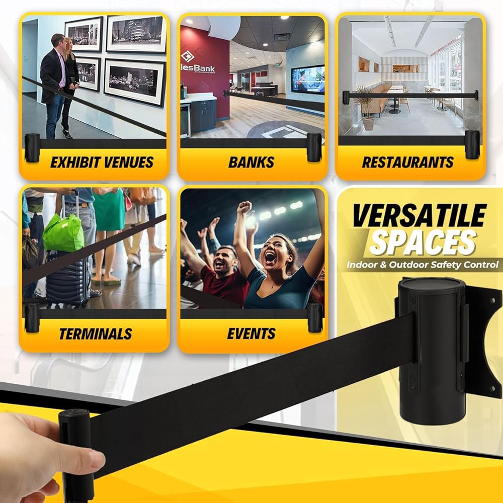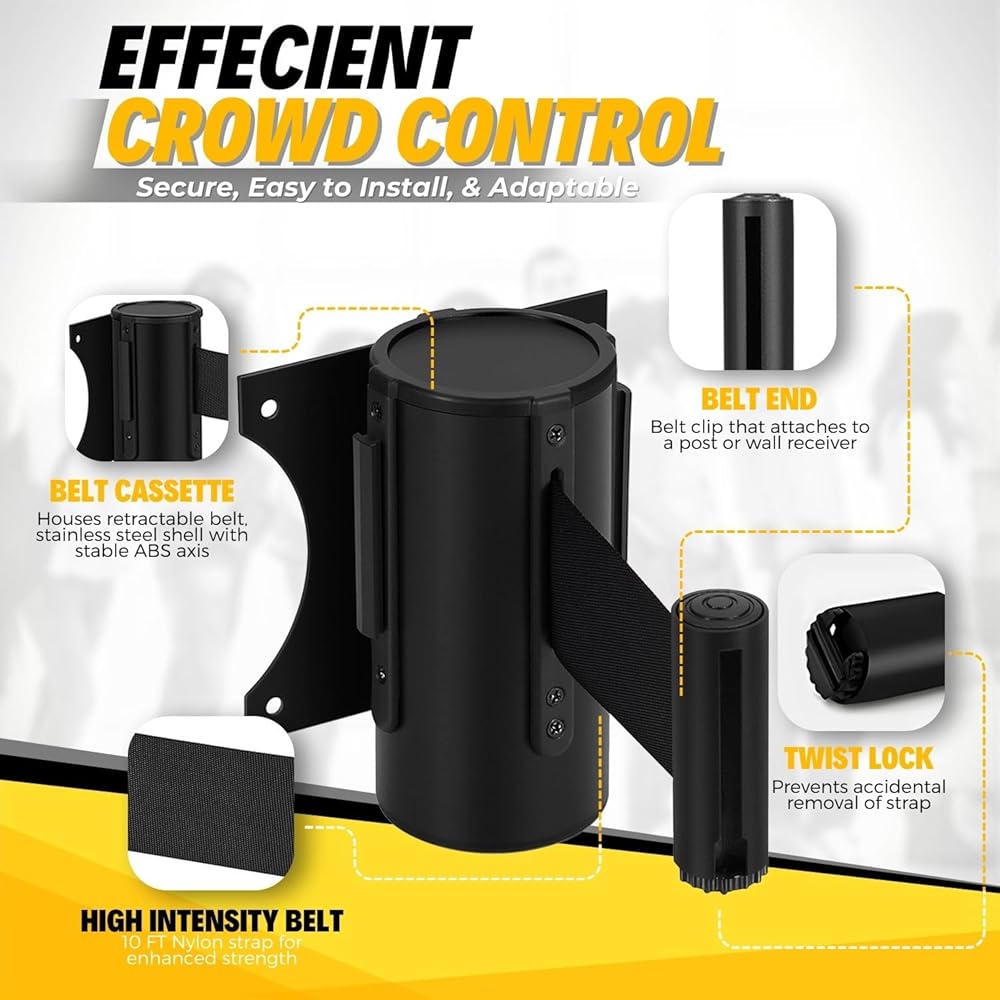 أعمدة حاجز الحزام القابلة للسحب متعددة الأغراض بطول 10 أقدام - استخدم حواجز الحزام القابلة للسحب المثبتة على الحائط للحفاظ على سلامة العملاء والعاملين، وتقييد الوصول من الممرات، وممرات المستودعات، وخلجان التحميل، وغيرها من المناطق التي يحتمل أن تكون خطرة. جيد جدا لاستعمال في الداخل و الخارج. مثالي للملاعب والمناسبات الرياضية العامة والمسيرات والمطاعم والمهرجانات.