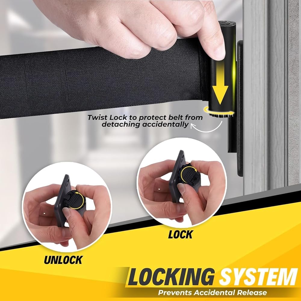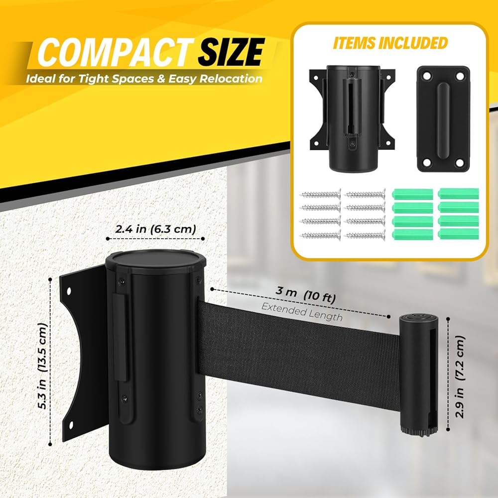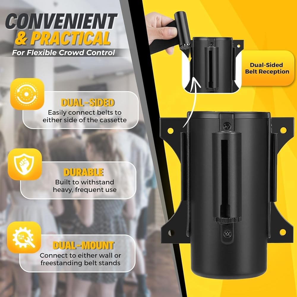 التحكم غير المزعج في الحشود - تعمل حواجز الحزام الثابتة المثبتة على الحائط على تعزيز السلامة والتنظيم مع القضاء على الحاجة إلى الدعامات التقليدية في الأماكن التي تكون فيها المساحة محدودة. ما عليك سوى توصيل طرف الحزام العالمي بدعامة أخرى أو بجهاز استقبال حائطي متوافق