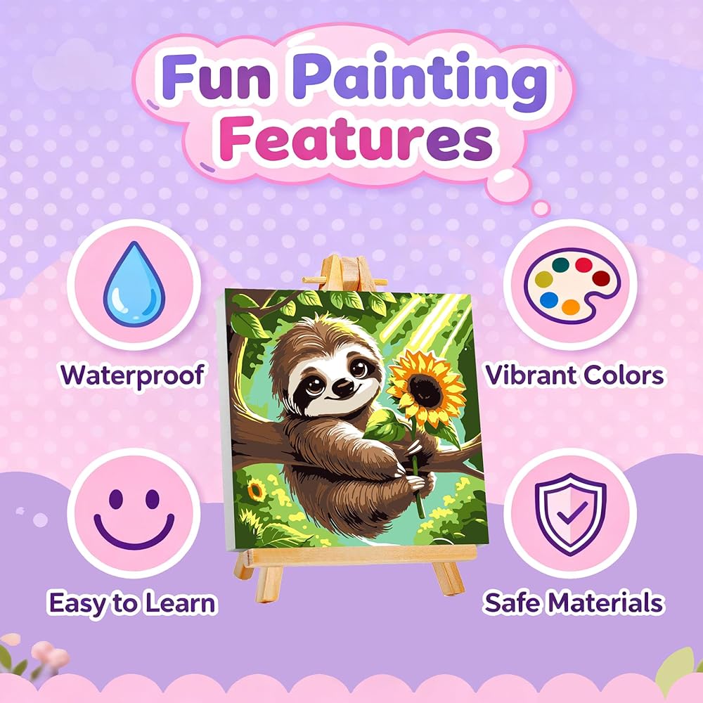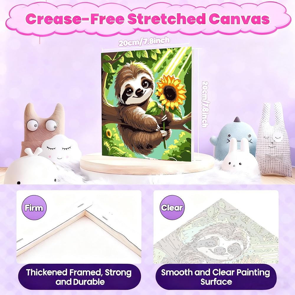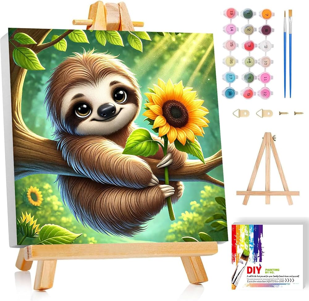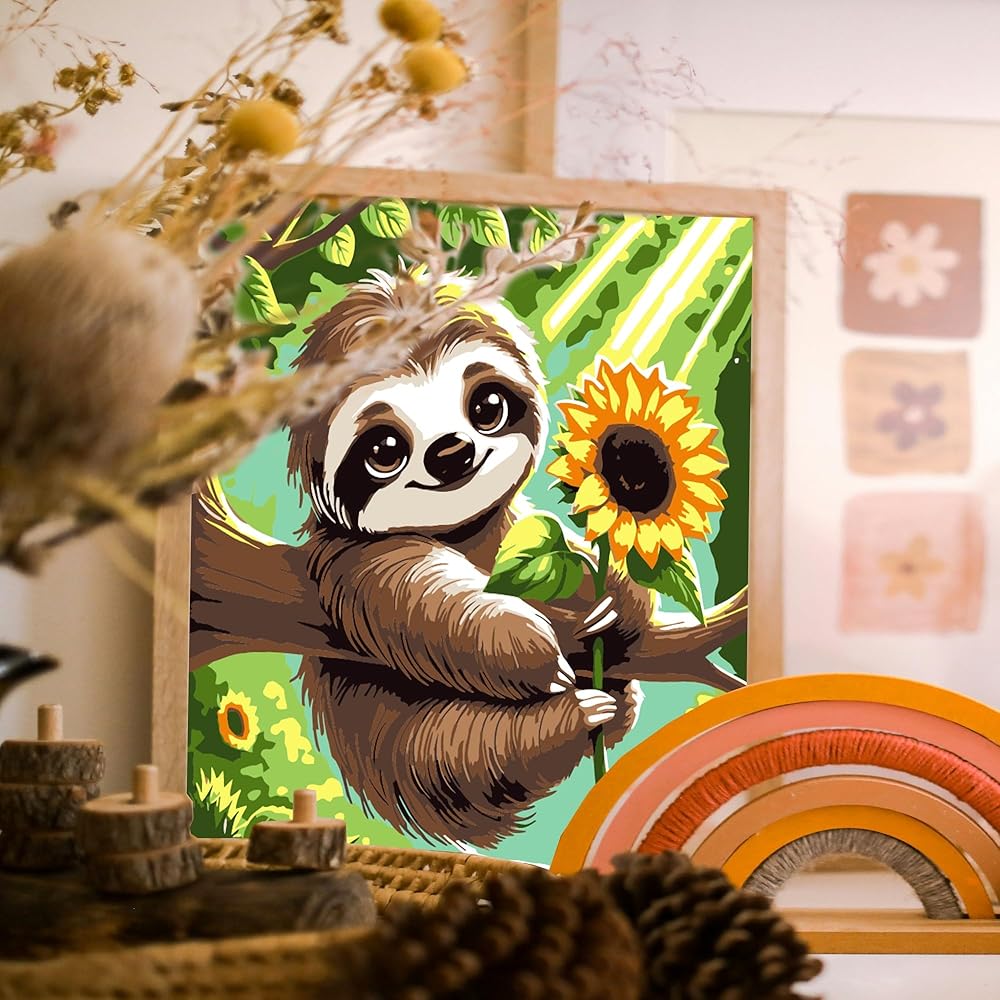 مجموعة طلاء الكسلان من جيموزايك بالأرقام للأطفال مع إطار وحامل، طلاء بالأرقام للأطفال من سن 8 إلى 12 سنة، لوحة زيتية أكريليك DIY لديكور جدار المنزل، 8 × 8 بوصة