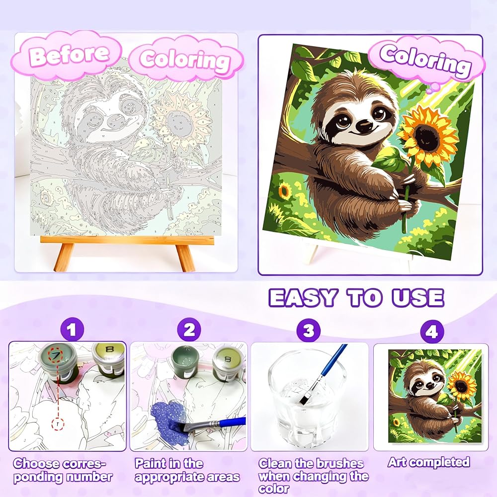 فكرة هدية رائعة: حيوان كسلان لطيف سهل الطلاء بالأرقام للأطفال من سن 4 إلى 8 سنوات، هدية مفاجئة وفريدة من نوعها لأطفالك أو أحفادك، أو عشاق الصناعة اليدوية، أو أي شخص يستمتع بالفن المصنوع يدويًا