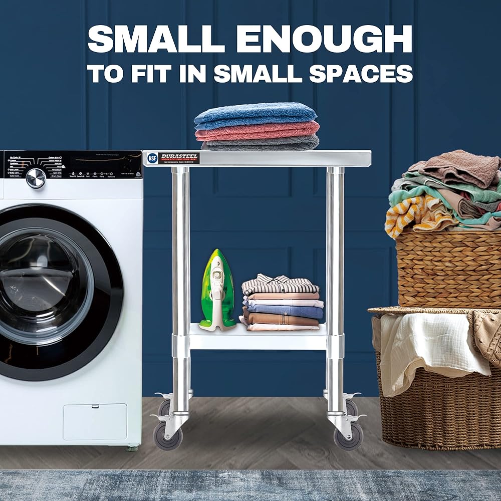 رف قابل للتعديل: حدد سعة التخزين الخاصة بك مع الرف السفلي المجلفن القابل للتعديل. [نموذج NSF رقم: SS-DR2412-18Z المخصص لطاولة العمل المعتمدة من NSF، العجلات غير مشمولة في الشهادة]