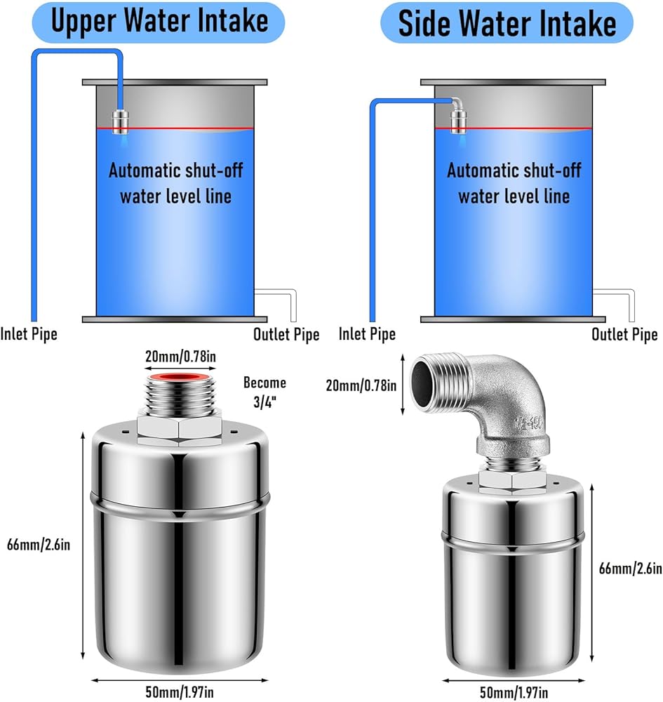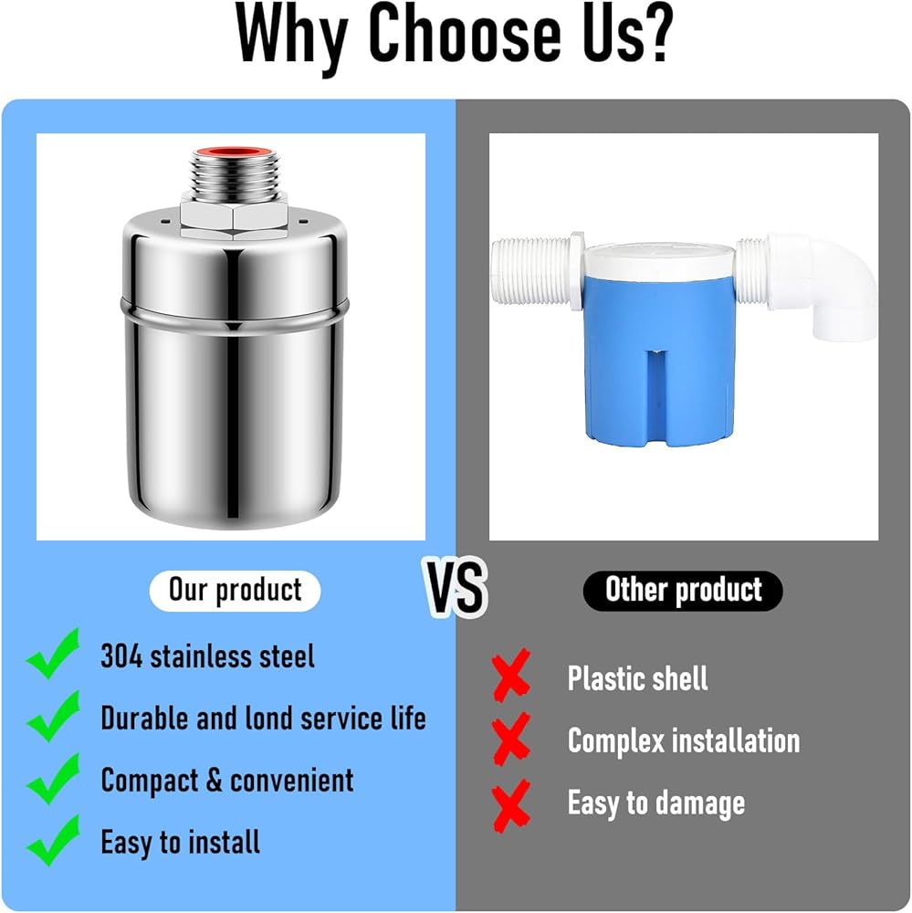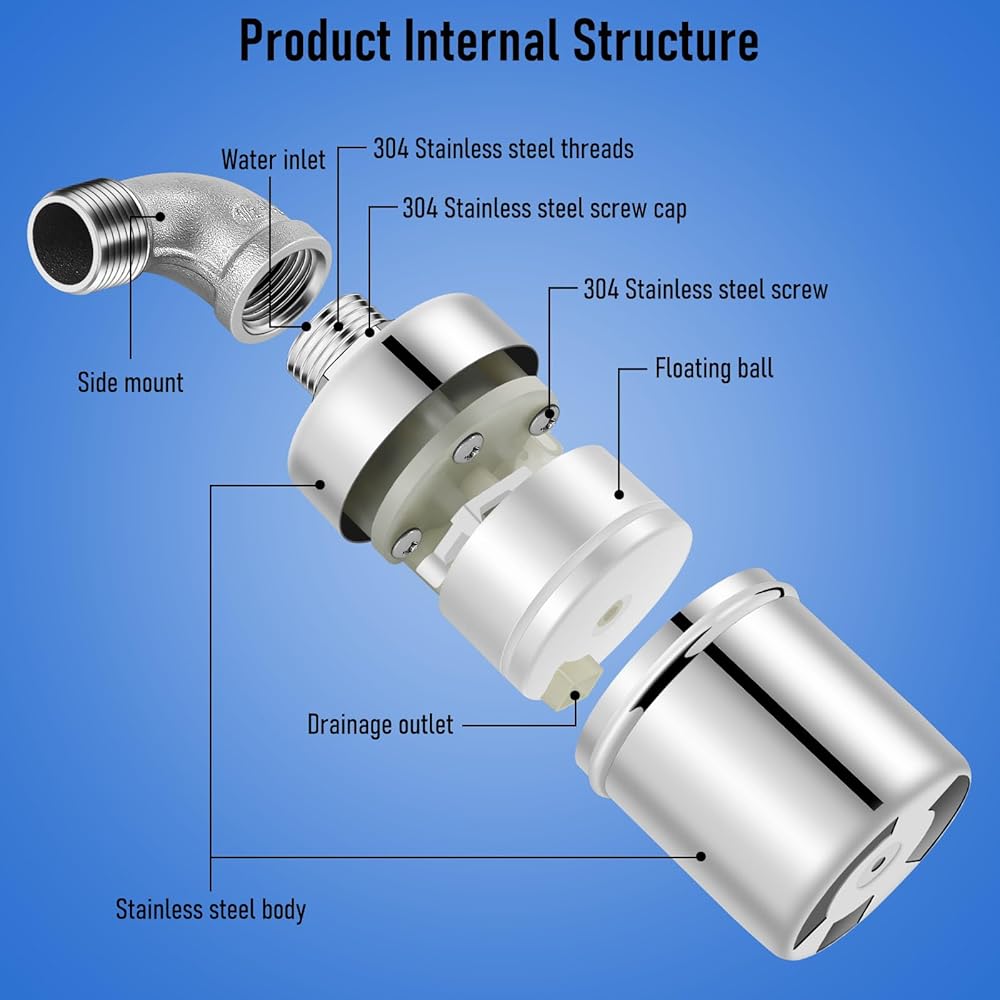 【مواد آمنة ومتينة】صمام تعويم أوتوماتيكي بالكامل للتحكم في مستوى المياه من الفولاذ المقاوم للصدأ 304 مصنوع من مادة صالحة للطعام 304 من الفولاذ المقاوم للصدأ، وليس من السهل الصدأ، مما يضمن سلامة مياه الشرب. مظهر رائع، غلاف صلب ومتين، مع مقاومة قوية للاحتكاك ومقاومة الصدمات، مما يطيل عمر خدمة المنتج بشكل فعال، بحيث لا يصبح الاحتكاك في الحياة مشكلة.
