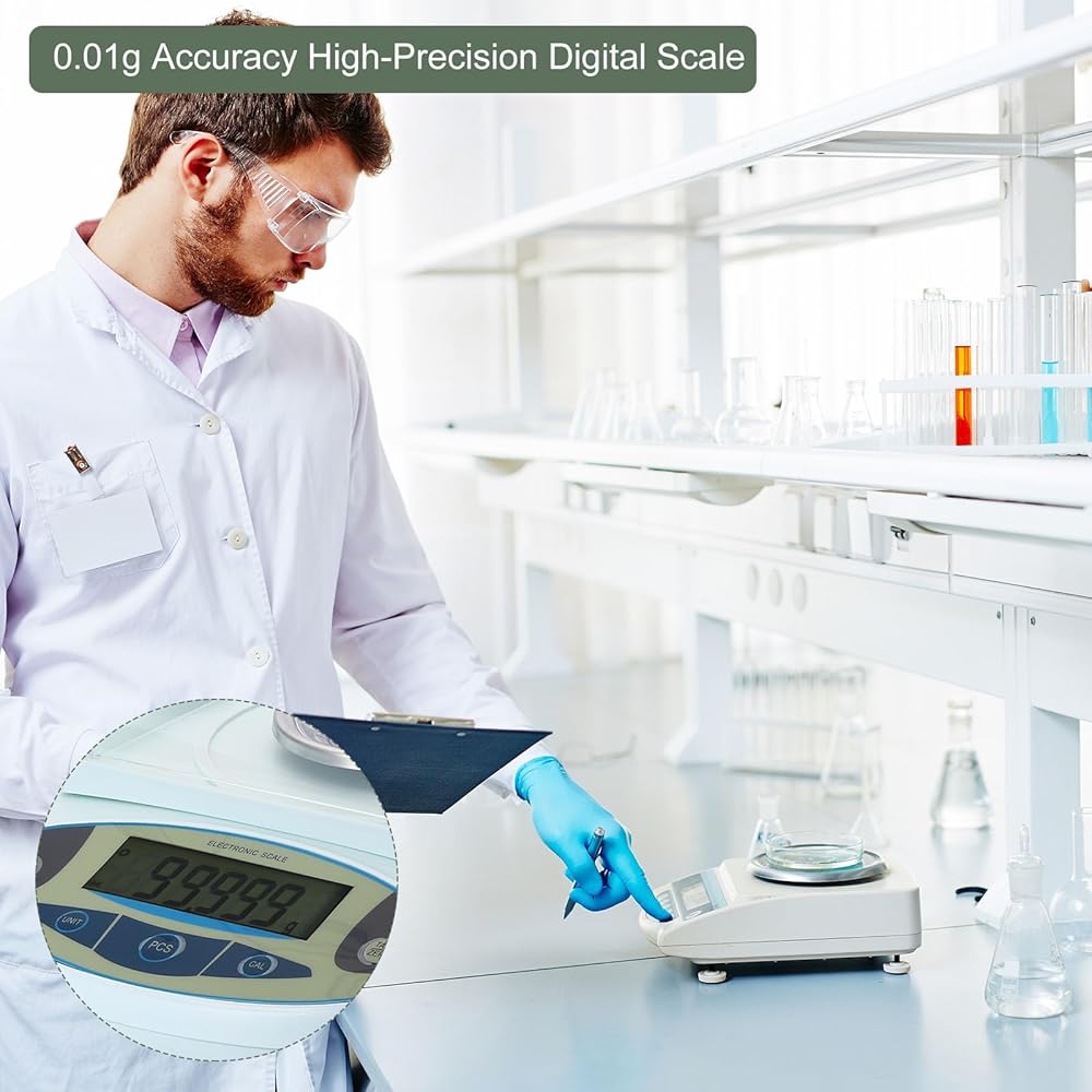 ميزان مختبر YOKIVE، ميزان علمي رقمي إلكتروني عالي الدقة | رائع للاستخدام اليومي في المنزل والمختبر والمطبخ (5000 جرام × 0.01 جرام)