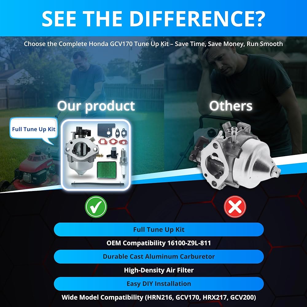 ✅ تدعم نماذج جزازة العشب المتعددة من هوندا - GCV170، HRN216، HRX217_متوافقة مع احتياجات مجموعة ضبط المكربن honda hrn 216 وhonda hrx217. تعد مجموعة ضبط Honda HRN 216 مناسبة لجزازات الدفع والنماذج المتحركة وغيرها من معدات الطاقة الخارجية باستخدام مكربن هوندا GCV170 أو مجموعات أدوات ضبط GCV 170.