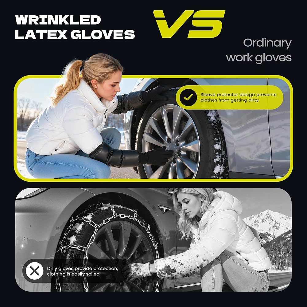 مجموعة كاملة جاهزة للشتاء: تشتمل كل مجموعة على جوربين ثلجيين عاليي الأداء، وحقيبة حمل مدمجة، وحقيبة تخزين مقاومة للماء، وقفازات ذات قبضة خاصة. تجعل القفازات التثبيت والإزالة أسهل مع الحفاظ على يديك نظيفة ومحمية في الطقس القاسي.