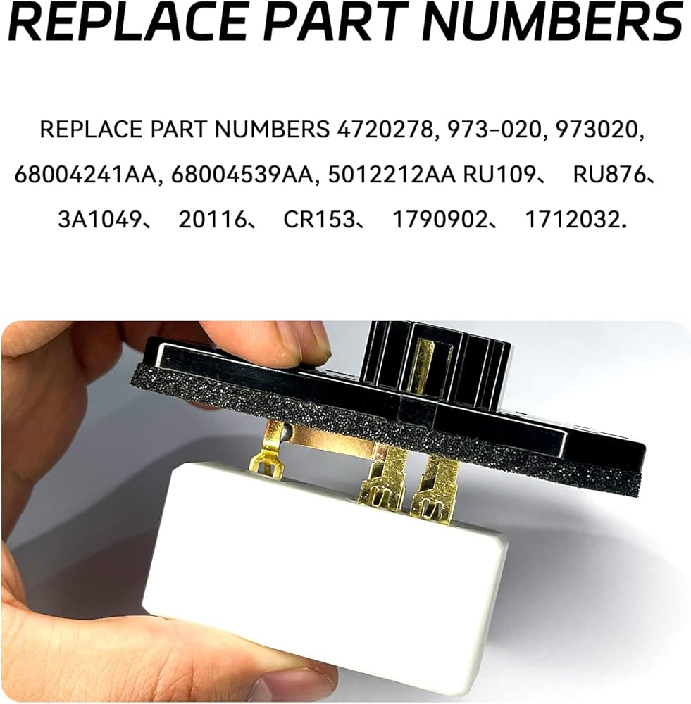 • 【Compatible Models】Our heater motor resistor is compatible with 1993-1999 Jeep Grand Cherokee, 1994-2008 Dodge Ram 1500 Pickup, 1994-2008 Dodge Ram 2500 Pickup, 1994-2008 Dodge Ram 3500 Pickup, compatible with OEM numbers: 4720278, 973020, 68004241AA, 68004539AA, 5012212AA, 1712032, 3A1049, 20116, CR153, RU109, RU876, 1790902, please check the description compatibility before purchase.