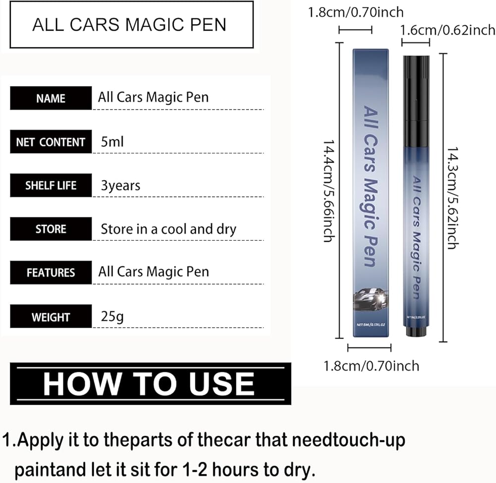 【سهل الاستخدام】يضمن رأس القلم الدقيق تطبيقًا دقيقًا، فقط ضعه على الخدش واتركه يجف. تمتزج التركيبة الناعمة بشكل مثالي مع طلاء سيارتك وهي أداة أساسية لصيانة السيارة!