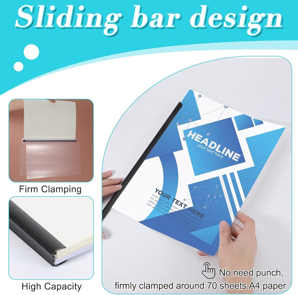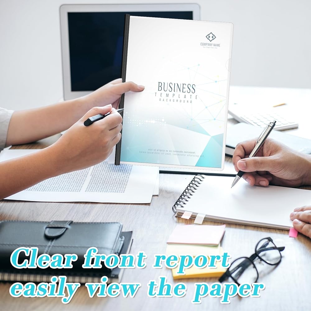 Crystal-Clear Professional Presentation: The ultra-transparent covers showcase your title pages while protecting contents from spills and tears. The semi-circular thumb cutout allows quick access to documents, and the sleek black sliding bars add a touch of sophistication to any business or academic setting.