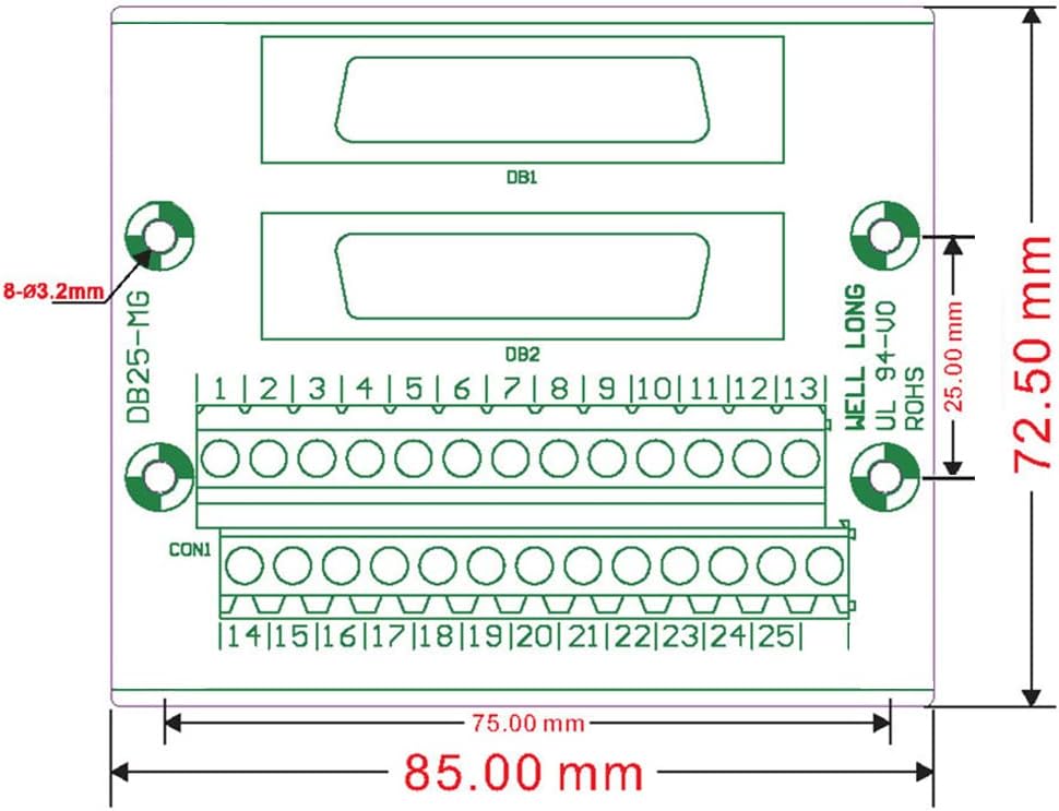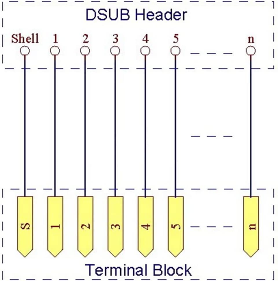 - موصلات RS232 DB25 للذكور والإناث، كتلة طرفية لولبية.