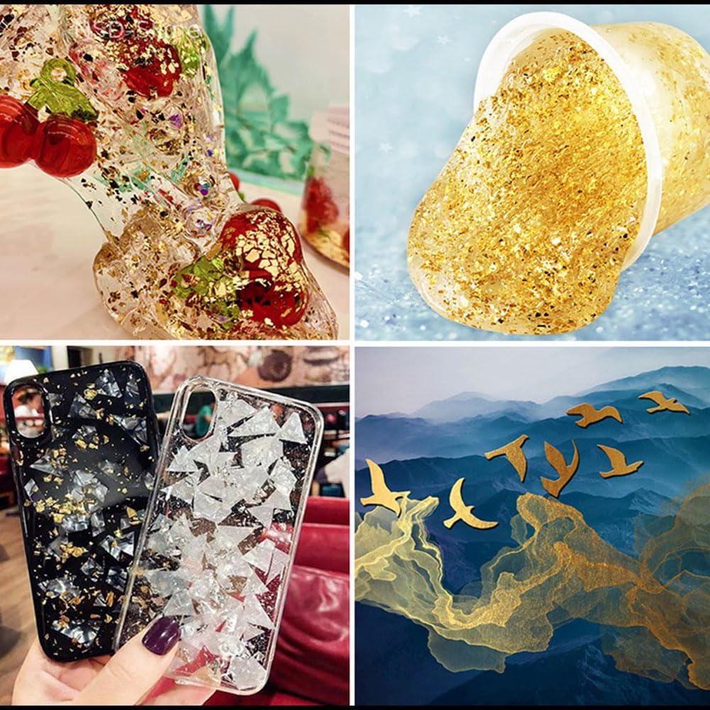 The gold leaf sheets are made by high technology production process.The color of our gold leaf sheets are very close to real gold.You can rip it to any size you want.It can produce amazing shiny texture effects.The leaf sheets size 3.15 x 3.35 inches.