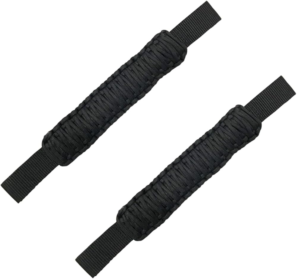 قطعتان من مقابض مسند رأس السيارة، مقابض مقبض باراكورد شديدة التحمل، ملحقات المقبض الداخلي للمركبة المنسوجة يدويًا من النايلون للسيارات وسيارات الدفع الرباعي والشاحنات الصغيرة (أسود)