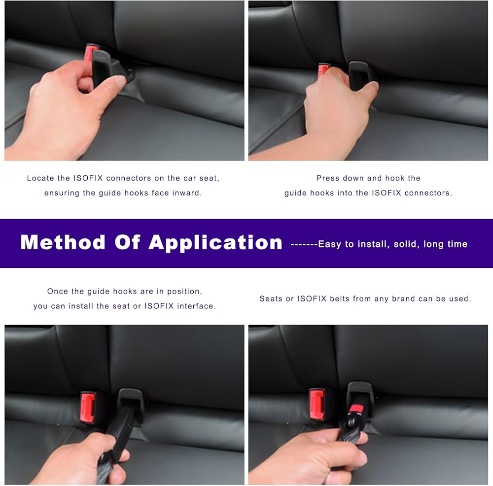 Easy to Use: The guides are simple to install. First, locate the ISOFIX anchor points in your vehicle seats, then align the guides with the anchors and gently press them into the seat gap. Continue applying pressure until the hooks lock firmly onto the ISOFIX anchor rings