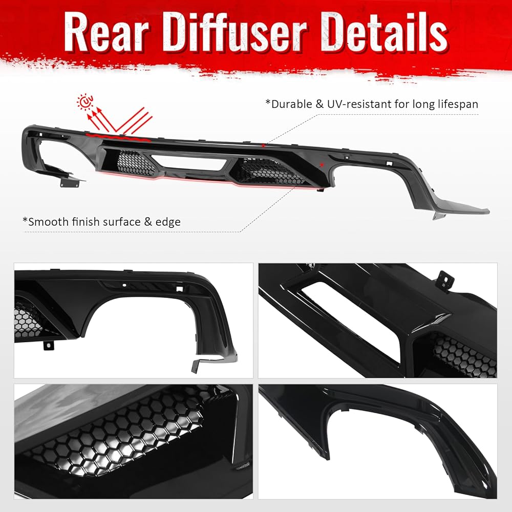 • جاهز للتثبيت: يتم شحنه باللون الأسود غير اللامع للشفاه/موزع واقي الصدمات الخلفي، جاهز للتركيب، لا حاجة للطلاء. طلاء شفاف محمي من الأشعة فوق البنفسجية، مقاوم للبهتان من أجل عمر أطول.