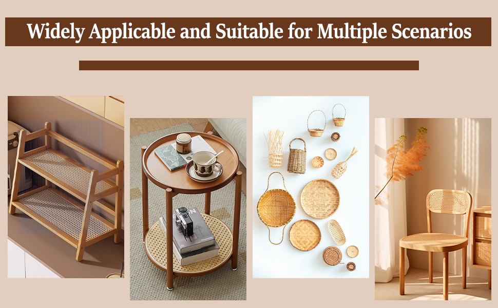【متعدد الاستخدامات في أنماط مختلفة】ملمس منسوج بسيط وشكل أنيق، مناسب للنمط الشمالي والنمط الياباني ونمط وابي سابي وأنماط منزلية أخرى، سواء تم استخدامه كرف مزخرف في غرفة المعيشة ومستلزمات تعليب الكرسي أو كسلة مفاتيح في الردهة، يمكن أن يمتزج ديكور الروطان هذا بسلاسة. ويمكن أيضًا استبدال ورق الاتصال الروطان لتزيين سطح الأثاث، كما أن إصدار لفة حزام الروطان أكثر ملاءمة لتحويل الأثاث بمساحة كبيرة، ويلبي احتياجات الأنماط المتنوعة بشكل كامل.