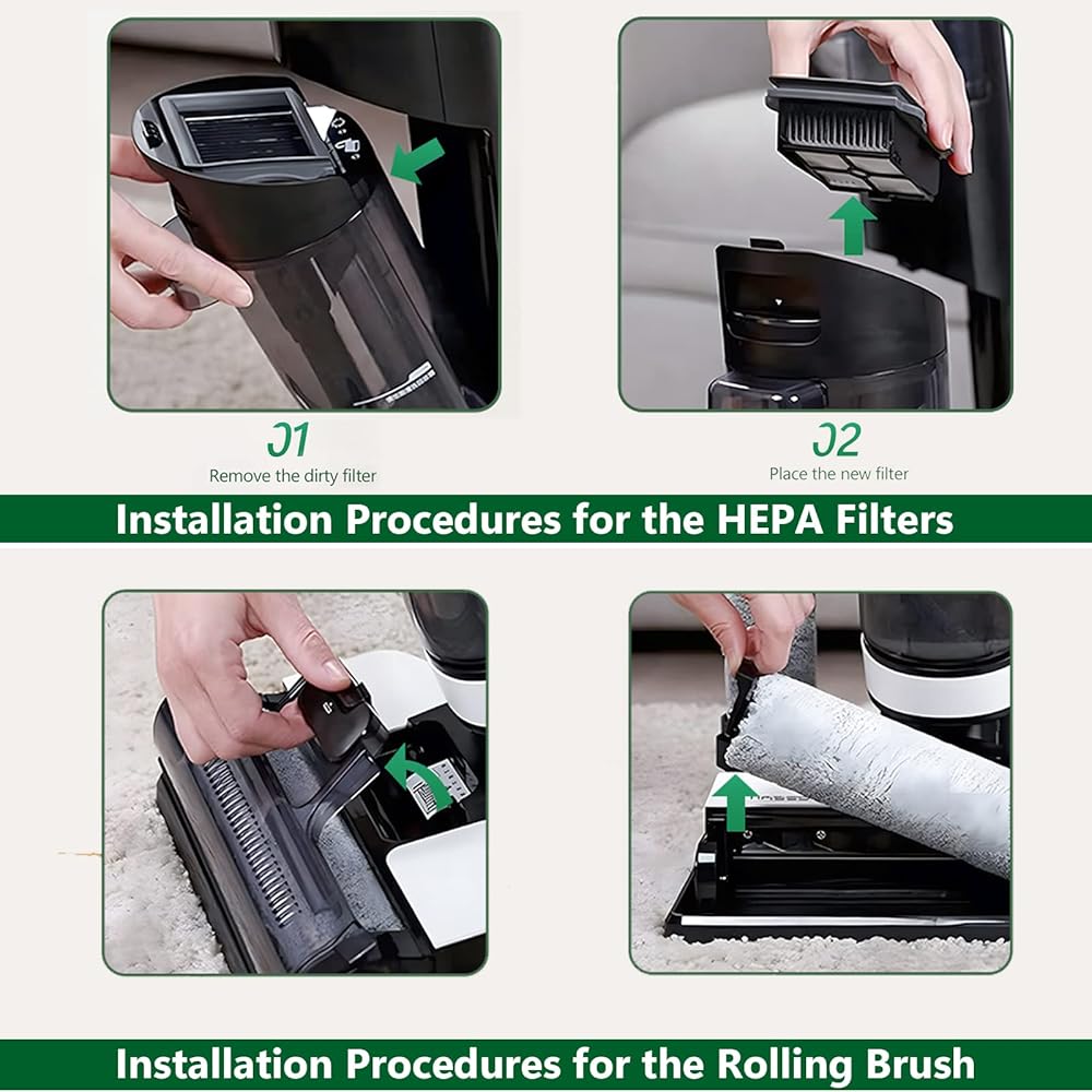 【سهلة التركيب والاستبدال】يمكن تركيب بكرة الفرشاة البديلة لتينيكو فلور ون اس 5 واستبدالها جيدًا دون أي أدوات. يوصى باستبدال الفلتر كل 3-6 أشهر للحصول على أفضل أداء للمكنسة الكهربائية.