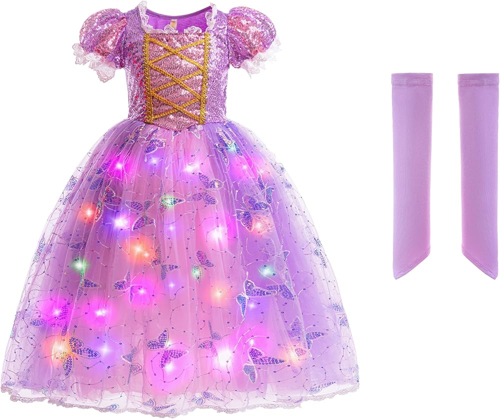 • Sizes: This toddler rapunzel dress is available in three sizes: 3-4, 5-6, and 7-8. To maintain the best condition of the girl dress up clothes for play. We recommend hand washing to ensure that the sequins and tulle on the princess dress remain intact