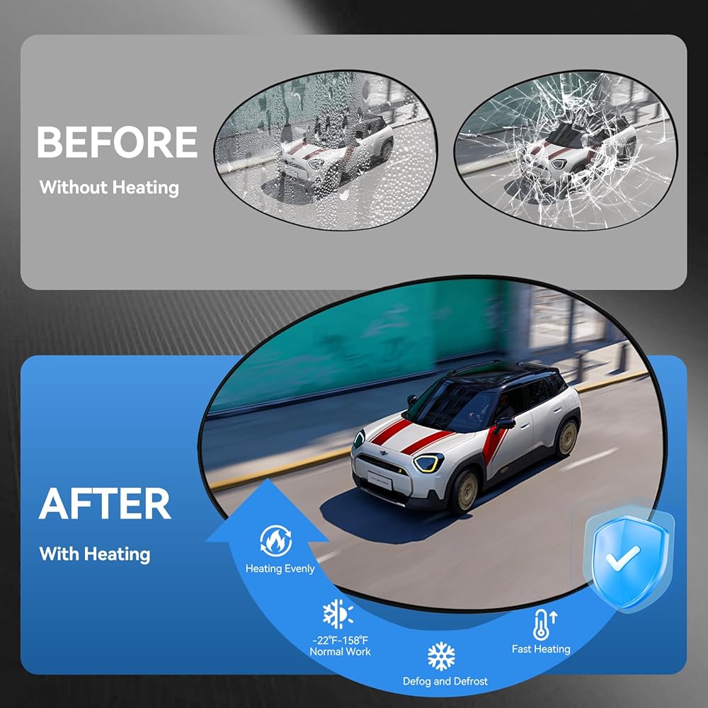 【ملاحظة: تتميز مرآة ميني كوبر كونتري مان هذه بوظيفة التسخين فقط. لا يشمل الكشف عن النقطة العمياء، أو ضوء الإشارة، أو وظيفة مضادة للوهج، أو وظيفة التعتيم التلقائي
