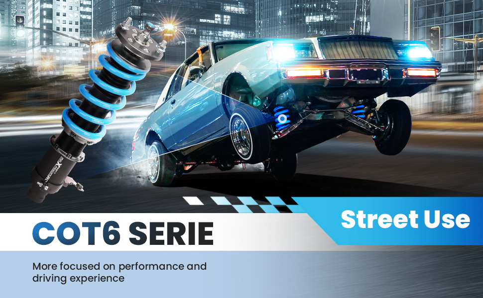• سلسلة أداء الشارع T6 مناسبة للقيادة في الشوارع، مقبض مخمد مطور (أسهل في التعديل)، زيت تخميد عالي الجودة مع لزوجة أفضل، ألواح ألومنيوم كاملة مطورة. تحقيق التوازن بين الراحة والسرعة والسلامة
