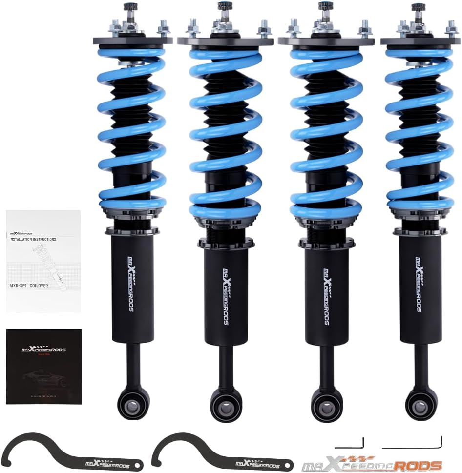 maxpeedingrods Coilovers لـ Lexus IS250/IS350 RWD 2006-2013، لـ Lexus GS300/GS350 2008-2014، طقم تعليق كويلوفيرز قابل للتعديل من 24 مستوى، مجموعات خفض قابلة للتعديل للارتفاع باللون الأزرق