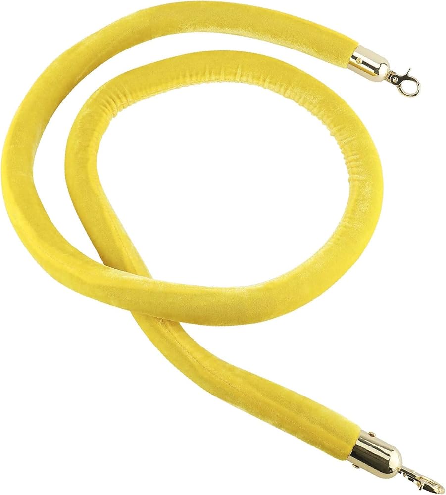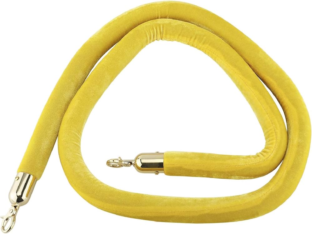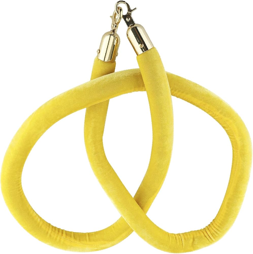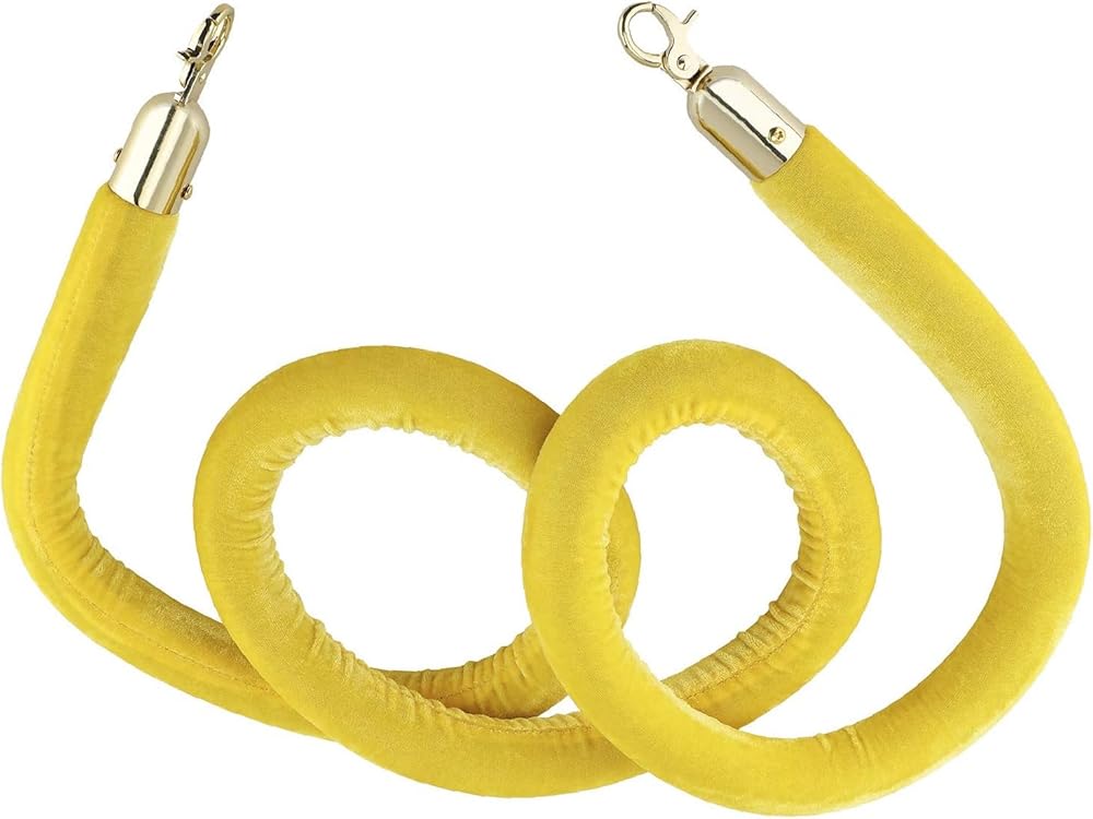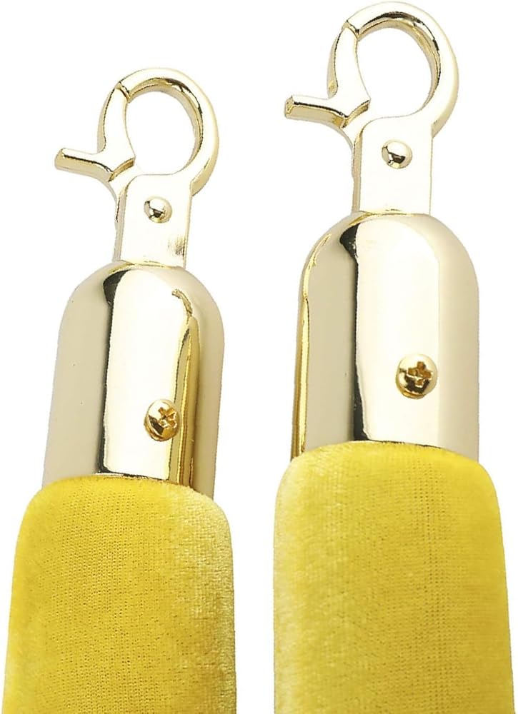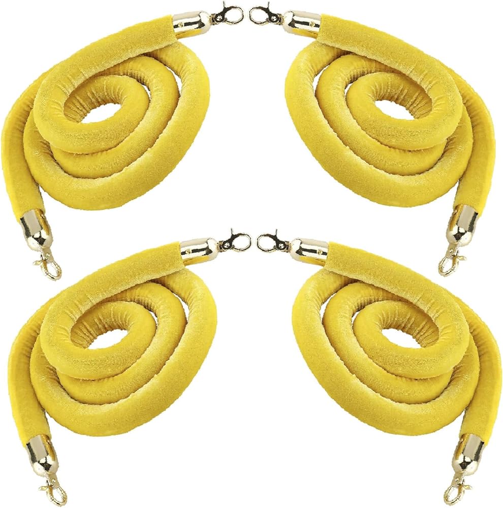 NovelBee 4 قطع من الحبال المخملية الصفراء مع خطافات ذهبية، حبال حاجز طابور بطول 5 أقدام، حواجز أمان من الحبال المخملية للتحكم في الحشود لديكورات الحفلات