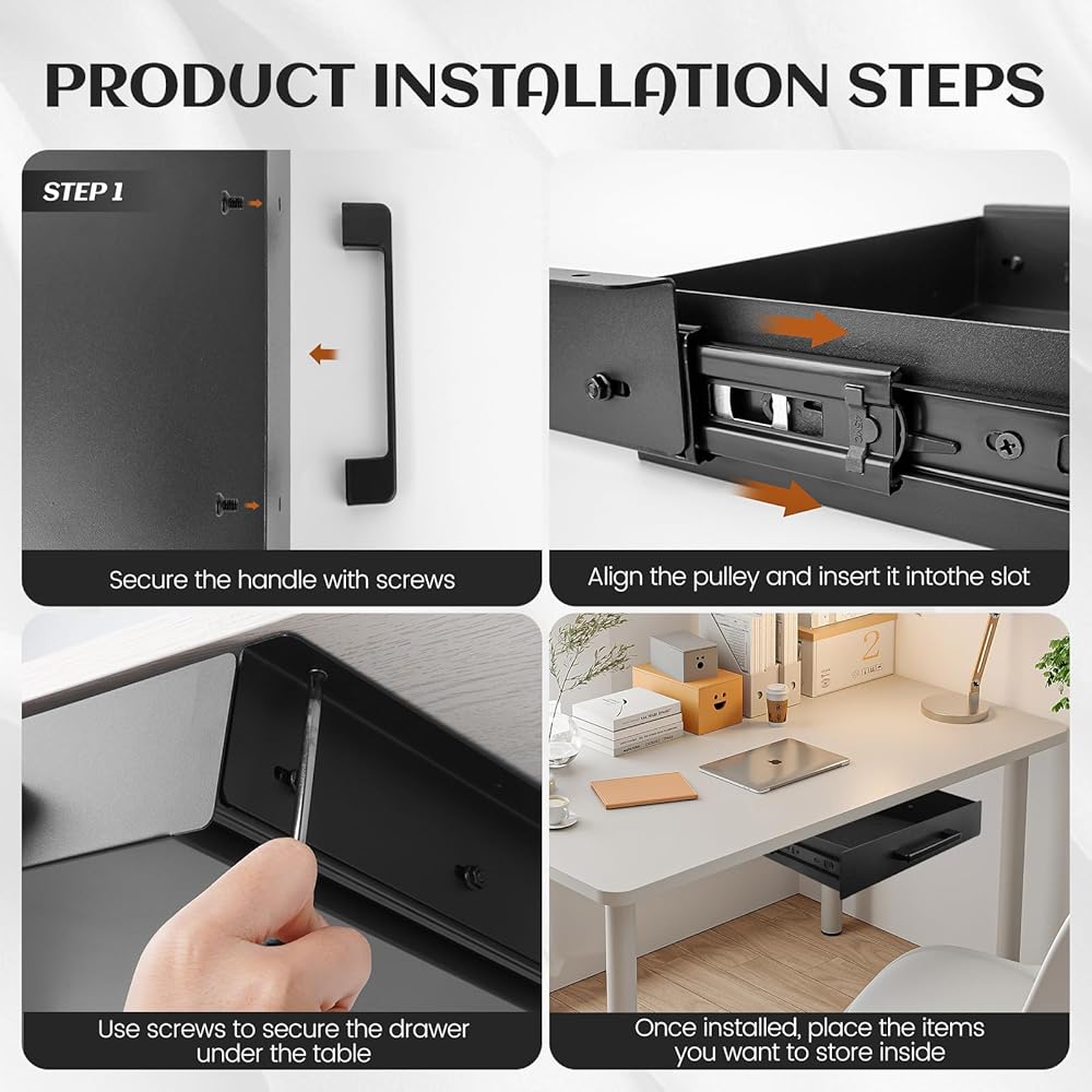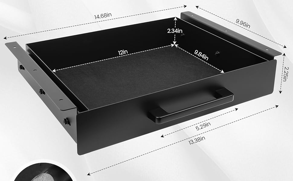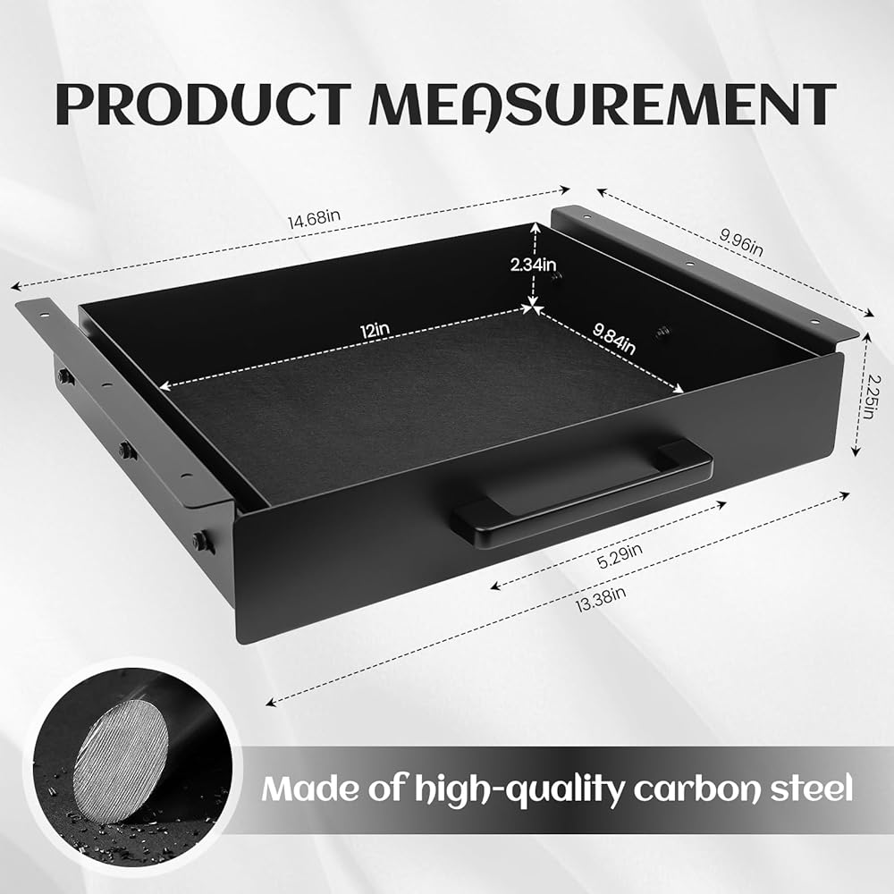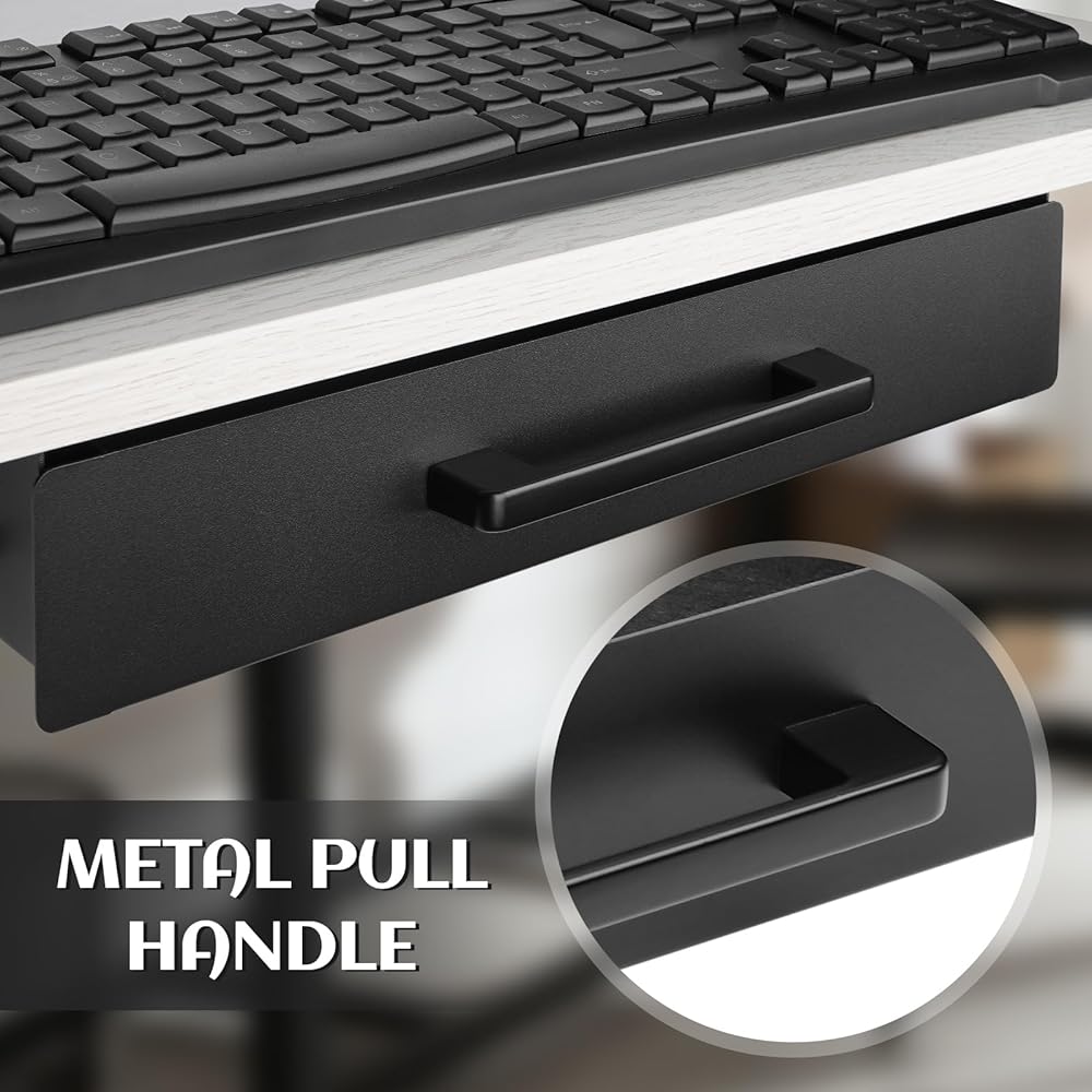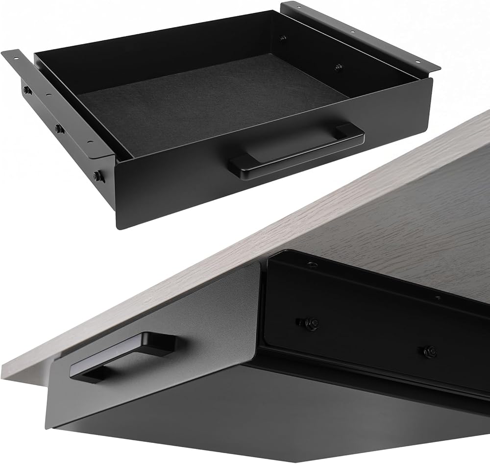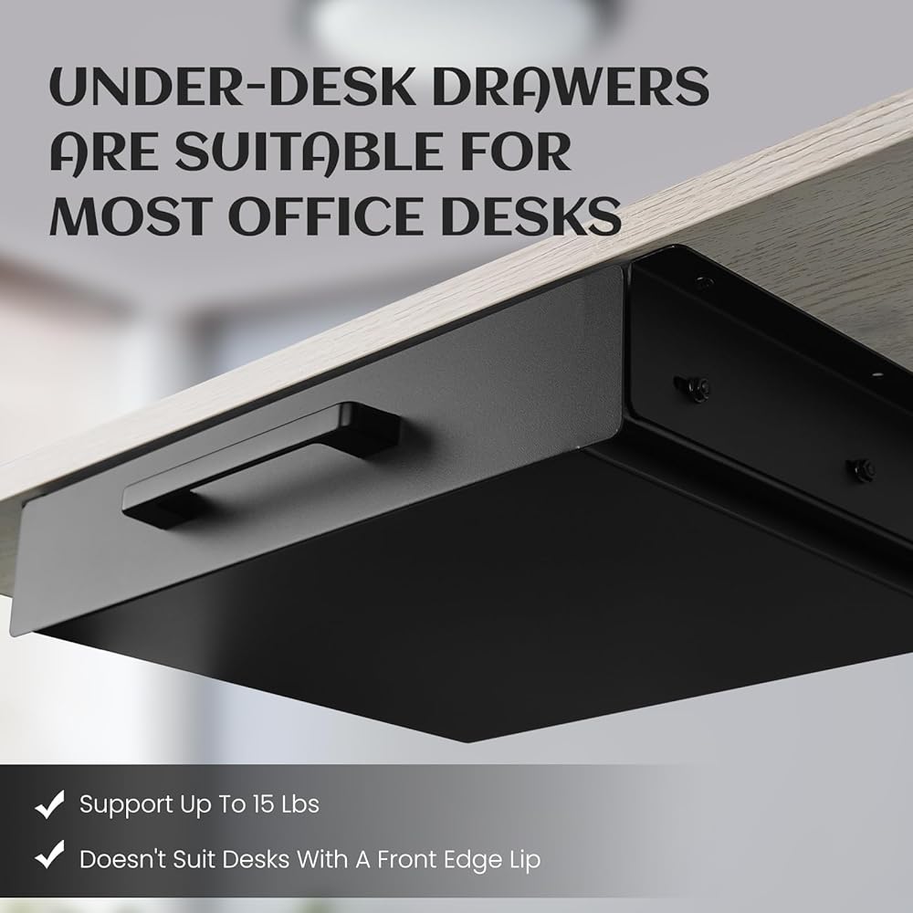 • دعم قوي بوزن 12 رطلاً للأدراج الموجودة أسفل المكتب: مصنوع من الفولاذ المتين، يمكن لهذا الدرج تحت المكتب استيعاب ما يصل إلى 12 رطلاً من المواد، مما يحافظ على مستلزماتك آمنة وبعيدًا عن الأنظار. يضمن البناء الصلب وآلية الانزلاق السلسة إعدادًا قويًا وخاليًا من التذبذب.