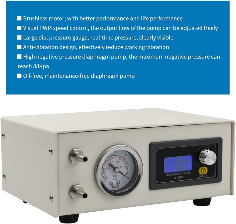 اعتماد محرك بدون فرش، مع أداء أفضل وأداء الحياة. تصميم تخميد الاهتزاز، يقلل بشكل فعال من اهتزاز العمل. مضخة الحجاب الحاجز خالية من الزيت ولا تحتاج إلى صيانة.